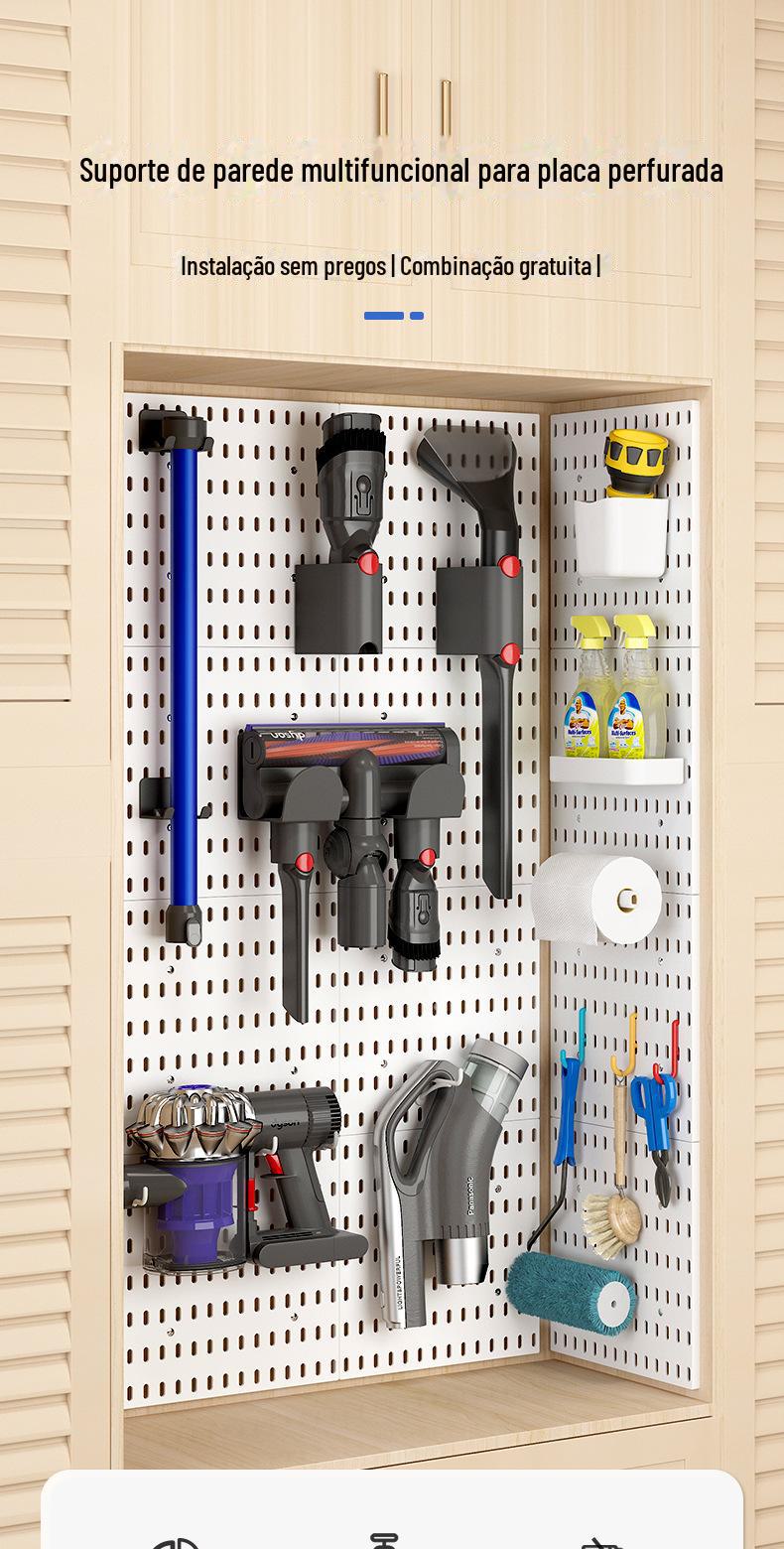 Armário de ferramentas de armazenamento de parede Fit Dyson aspirador de pó Rack de armazenamento Hole Board Punch-free Armário de armazenamento sem pregos