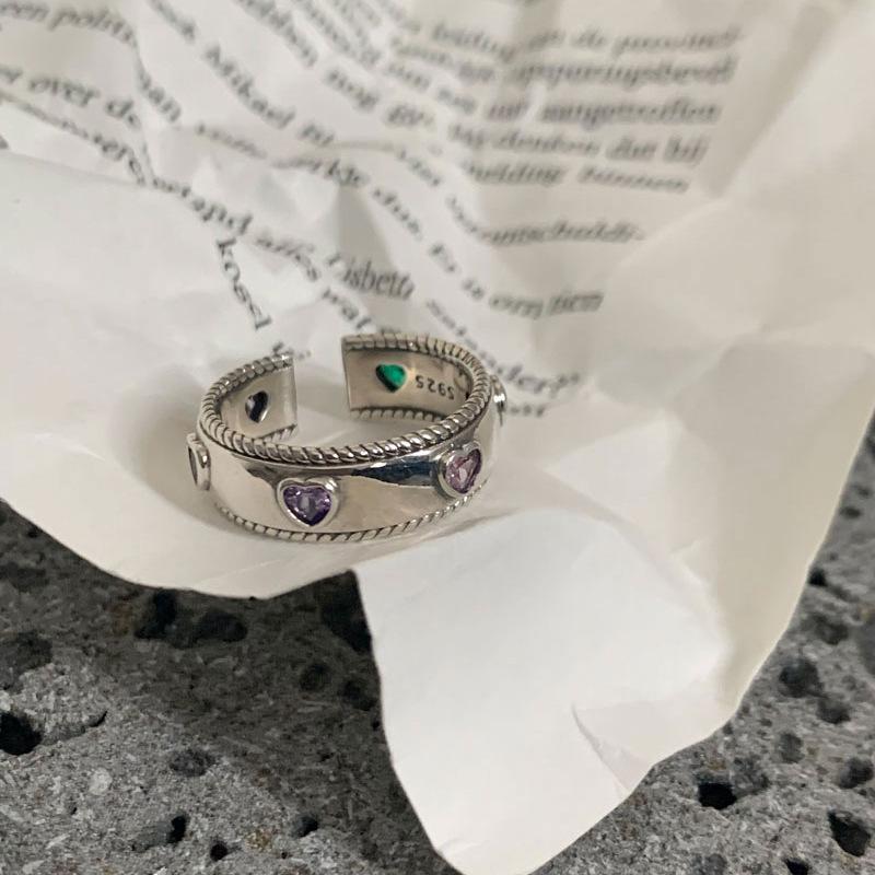 Anel de amor oco retrô de prata esterlina 925, anel aberto versátil, de luxo, leve, de luxo, de alta qualidade
