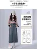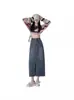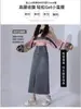 Saia Jeans Feminina Midi Evasê Pequena Fenda Cintura Alta Cor Pura Nova Coleção Primavera 2025 Saia Longa