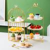 Compre Estilo europeu leve luxo ouro rastreamento pássaro gaiola armazenamento rack bolo de frutas sobremesa dim sum bandeja multi-camada chá da tarde mesa cerâmica no atacado no Joom.pro