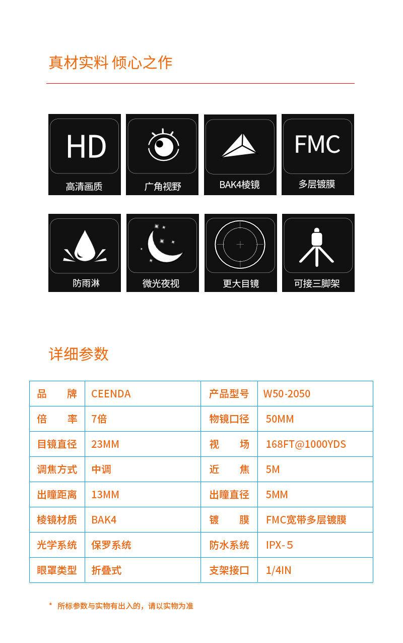 Binóculos Paul de metal grande com ocular 20x50, ângulo amplo de alta potência, visão noturna sem infravermelho, HD, adulto, wyj