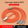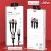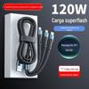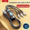 Trançado um-para-três 120W transparente com indicador de carregamento super rápido linha de dados três em um linha de carregamento de celular do carro