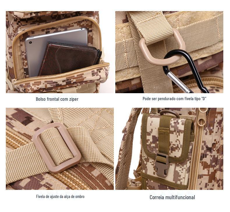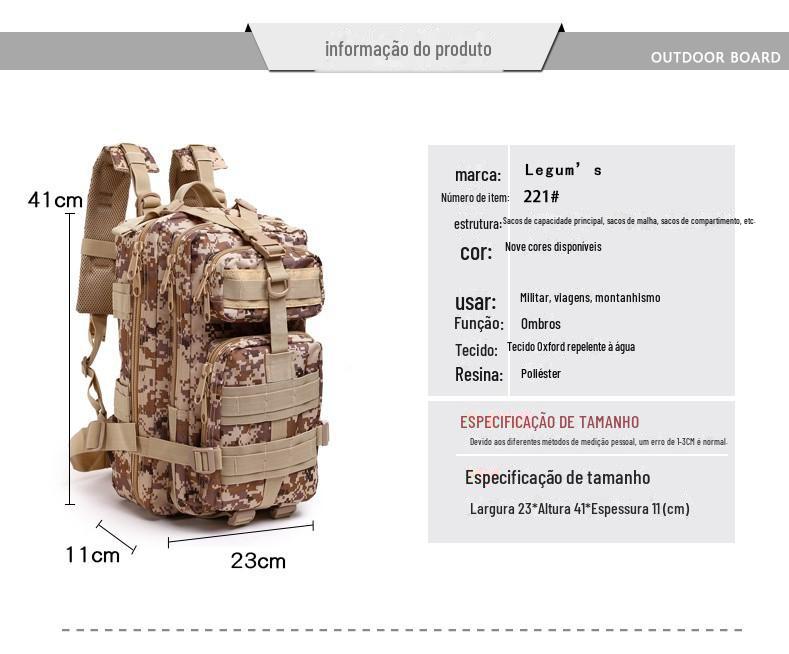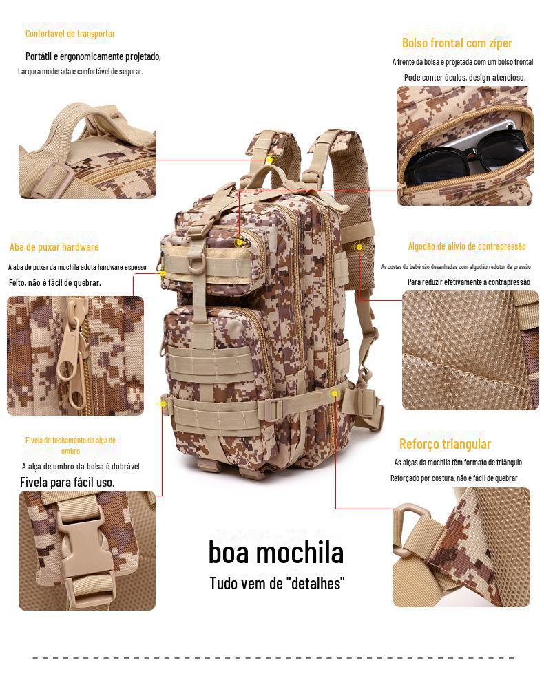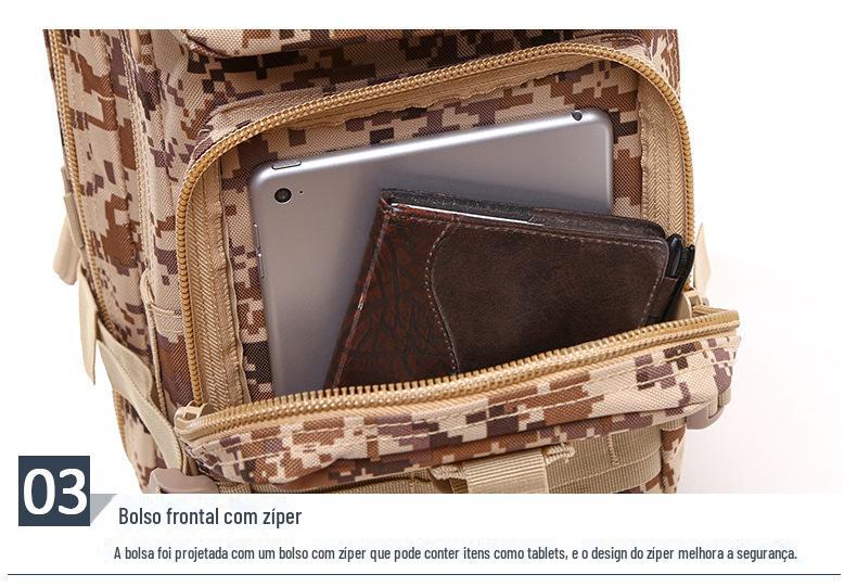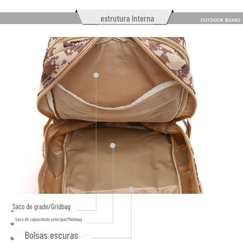 Mochila de Ataque Tático 3P Outdoor Assalto de Campo Multifuncional Mochila Esportiva para Estudantes Universitários Respirável e Impermeável