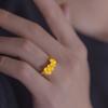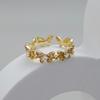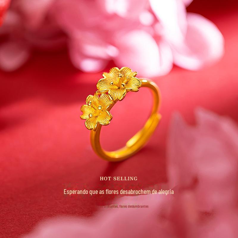 Anel Duplo de Flor Nicho Artístico Feminino Anel de Flor de Ouro Areia do Vietnã Casamento Joias Banhadas a Ouro