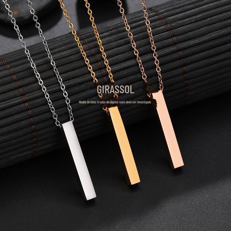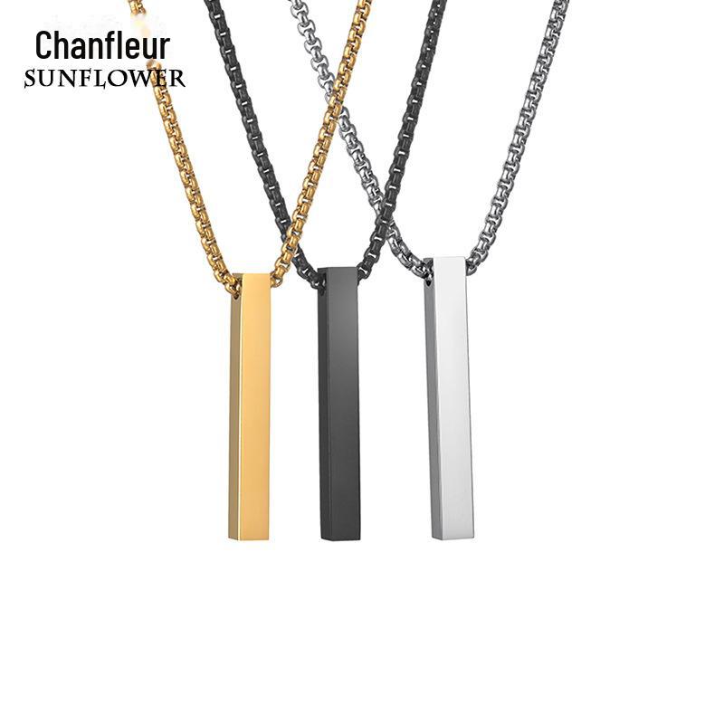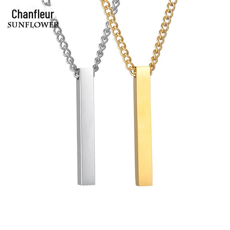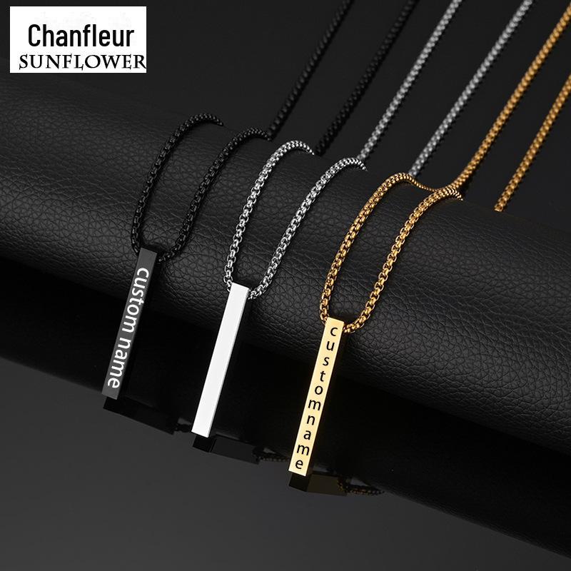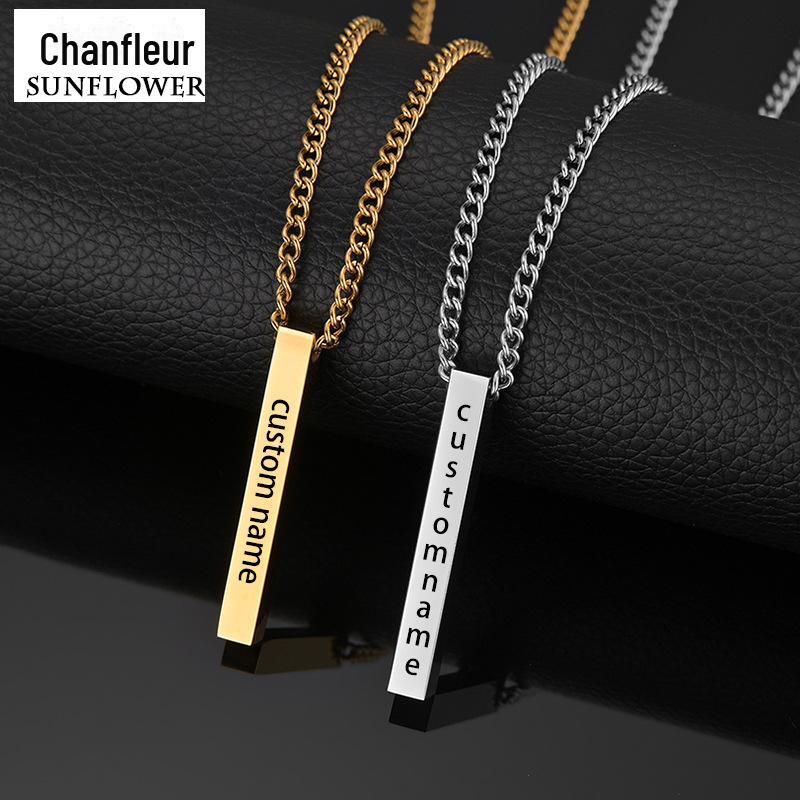 Colar Longo Simples Personalizado Coluna de Aço Inoxidável Letras nos Quatro Lados Colar Personalizado Venda Quente na Amazon