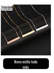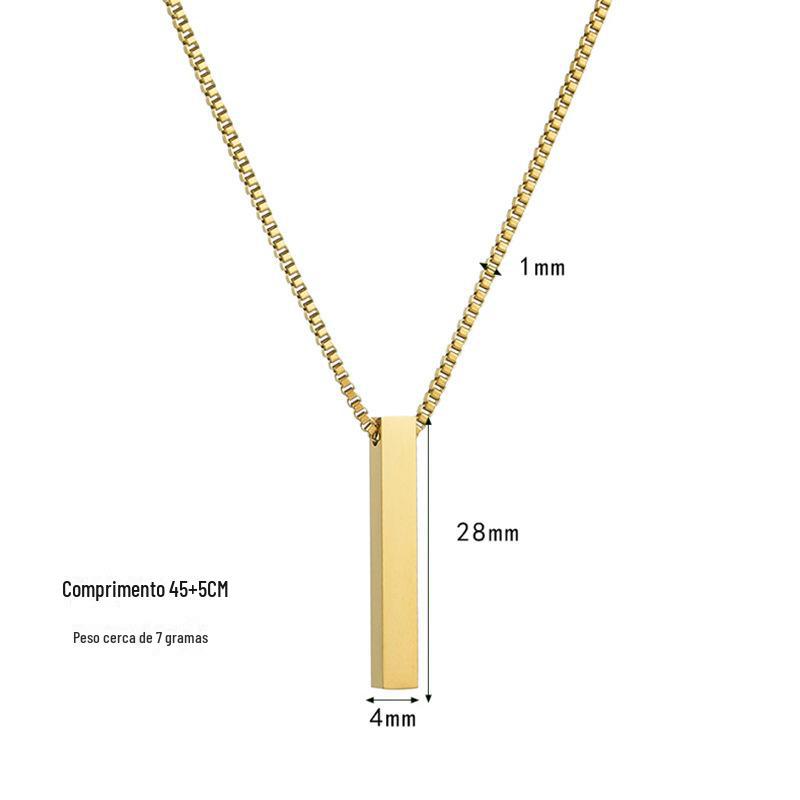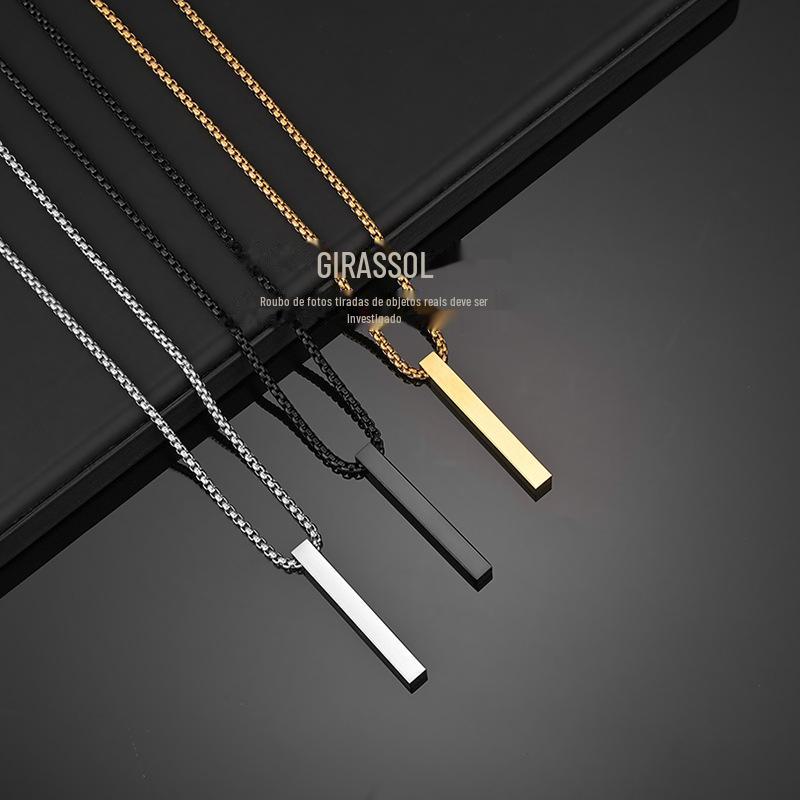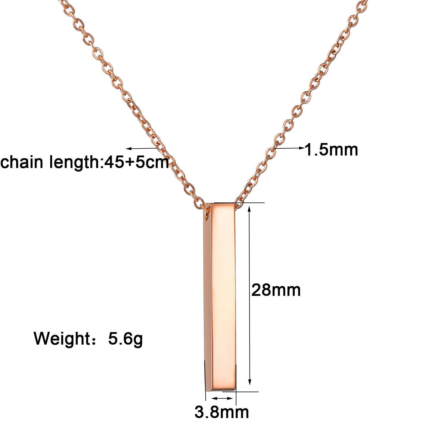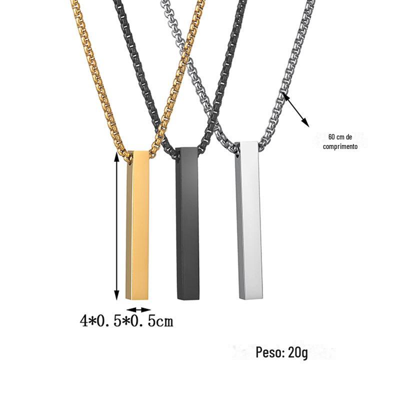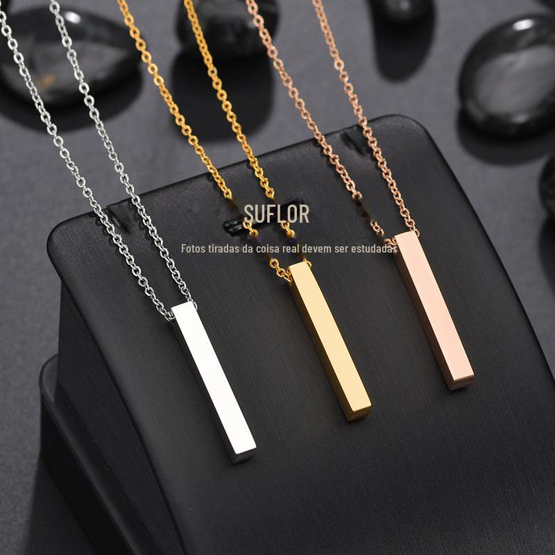 Colar Longo Simples Personalizado Coluna de Aço Inoxidável Letras nos Quatro Lados Colar Personalizado Venda Quente na Amazon