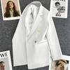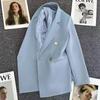Fruta verde terno jaqueta de alta qualidade simples estilo coreano pequeno terno drapeado perfil primavera e verão casual feminino terno