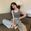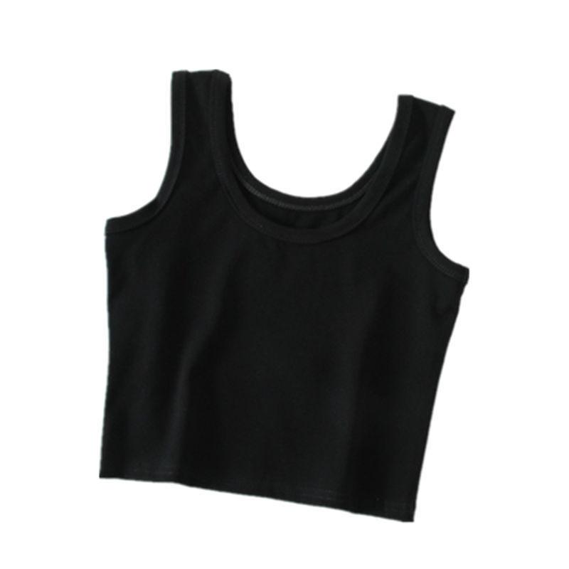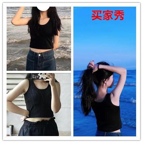 Camisole Pequeno Verão Exterior Wear Design Sense Sports Short Spice Girl Bottoming Preto sem mangas T-shirt Top