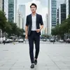 Terno Masculino de Qualidade azul escuro mercadoria genuína Estilo Coreano Moda Vestido Casual Slim Fit Calça de Terno Camisa Gravata terno