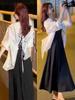 2024 Irmã Gordinha Verão Novo Estilo Gola Quadrada Emagrecimento Versátil Vestido de Alça Nicho Sense Cardigan Top Conjunto de Duas Peças