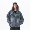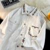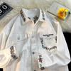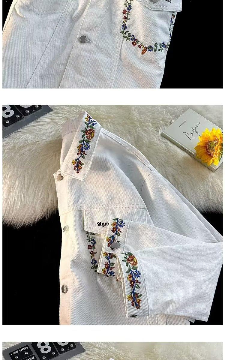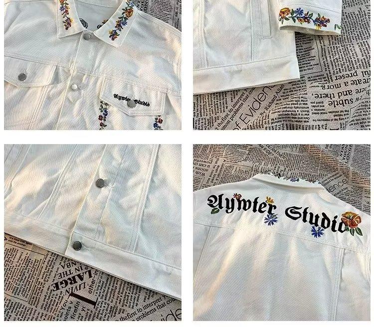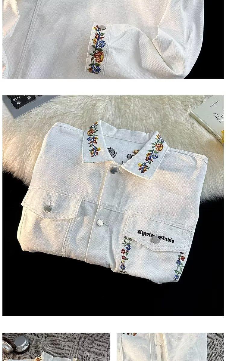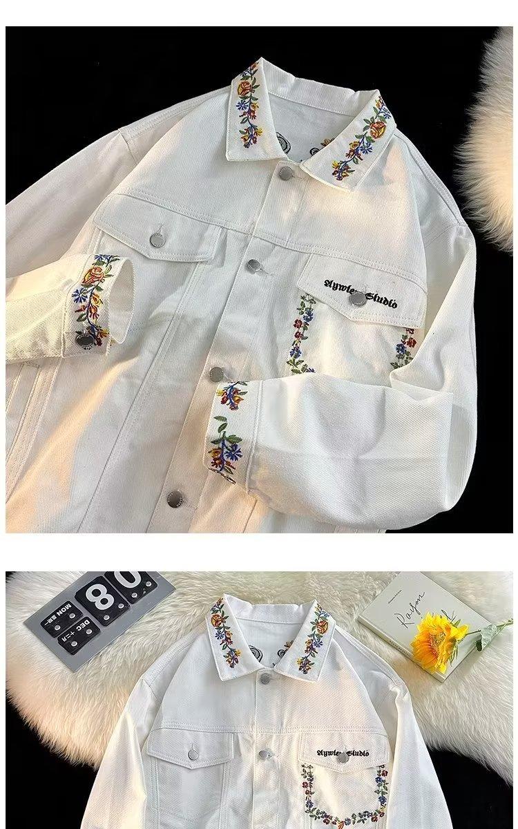 National Fashion Retro Heavy Industry Bordado Jaqueta Denim Branca para Homens e Mulheres Primavera e Outono Novo Design Sense Lassel Workwear Jaqueta