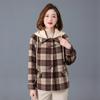 Casaco de lã dupla face para mulheres de meia-idade e idosas, cardigan com capuz, estilo Chanel, solto, plus size, casaco para mãe