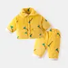 [Estilo inverno profundo] Dudu bebê home wear terno coral Fleece acolchoado engrossado flanela quente de inverno