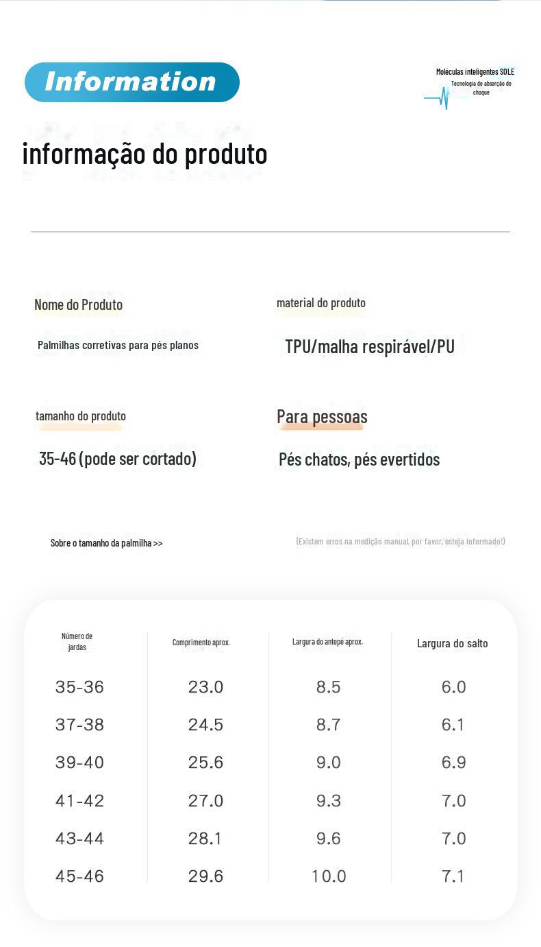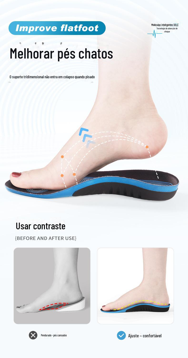 Suporte do Arco do Pé Plano Splay Interno Ortopédico Externo Masculino e Feminino Esportes Absorção de Choque Palmilhas Corretivas Infantis Adulto Respiráveis