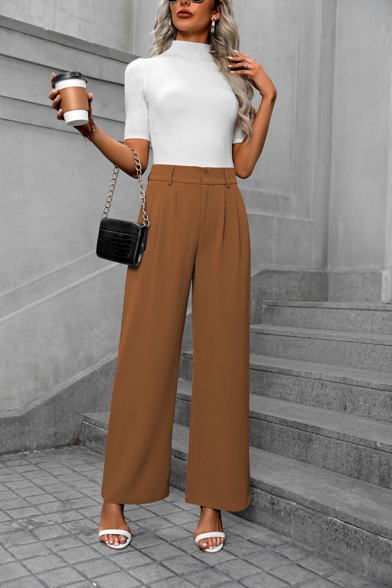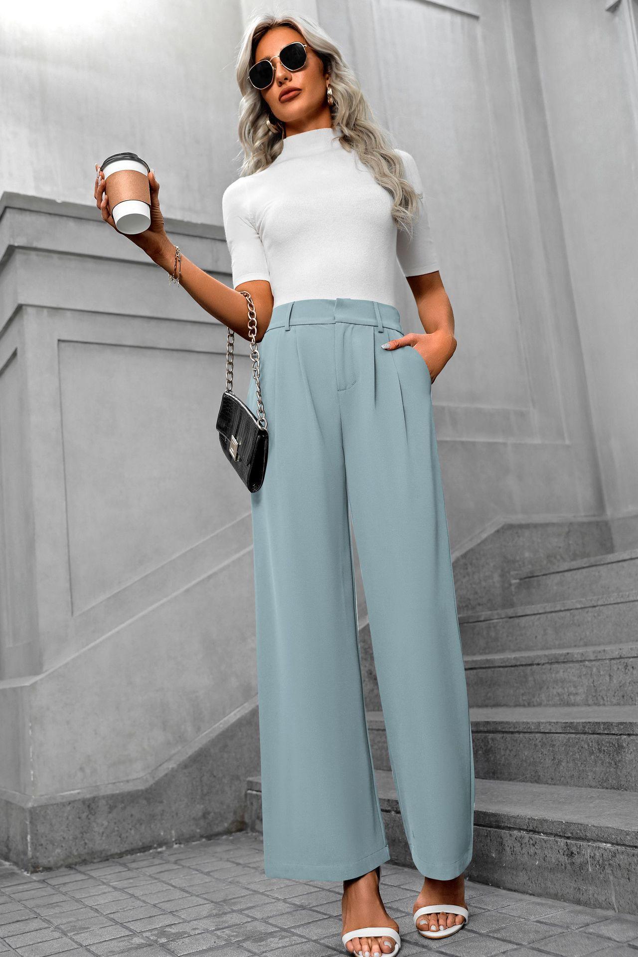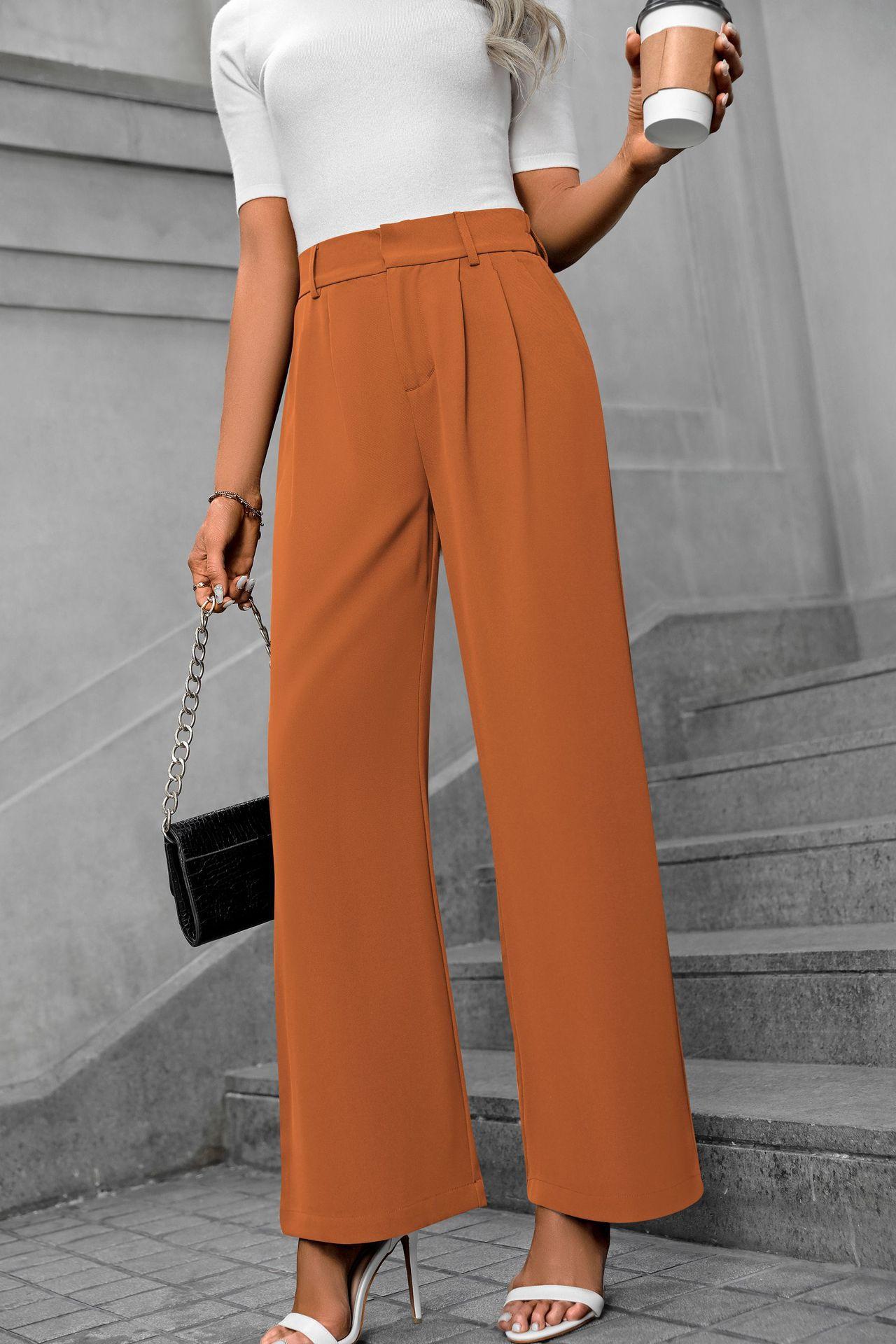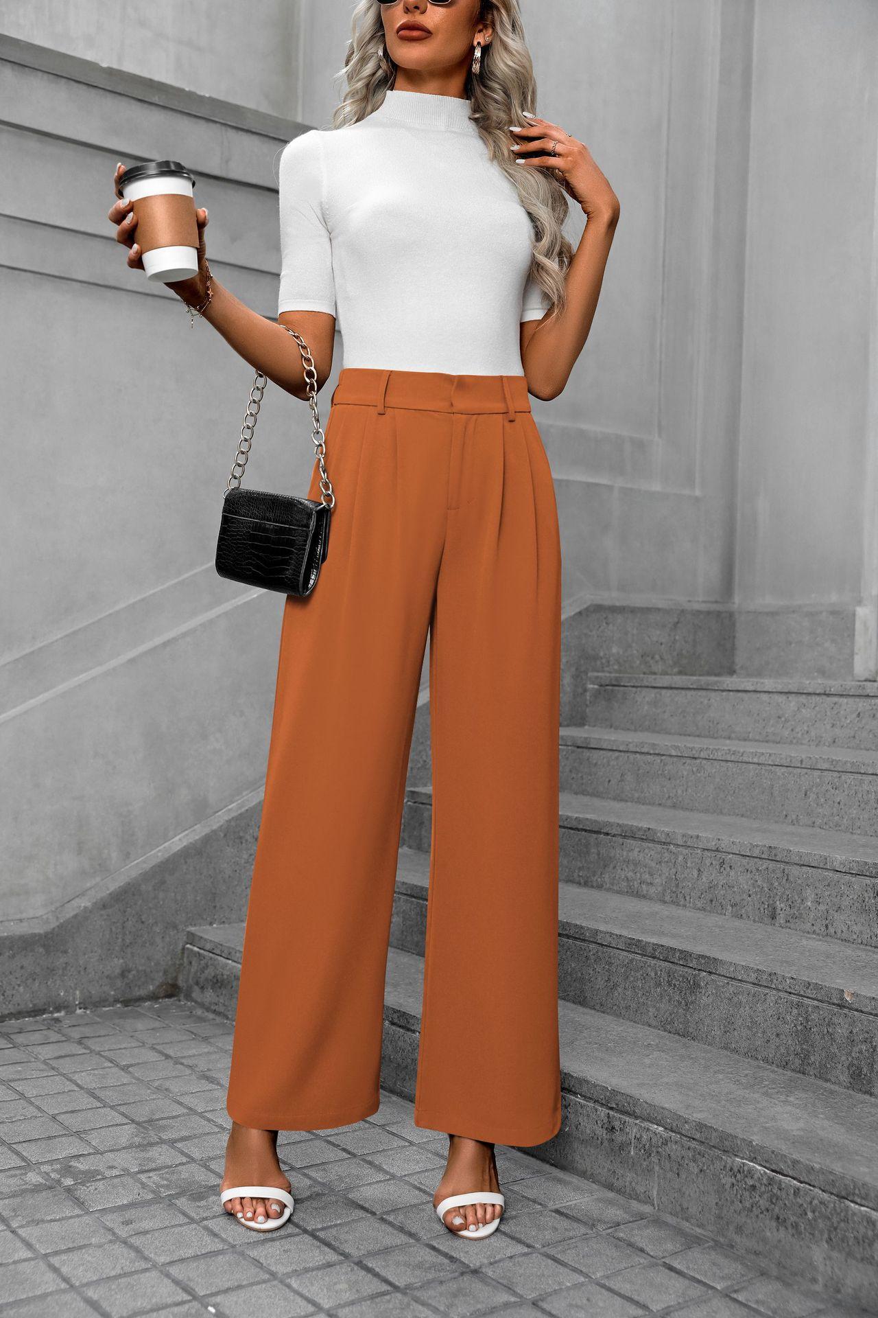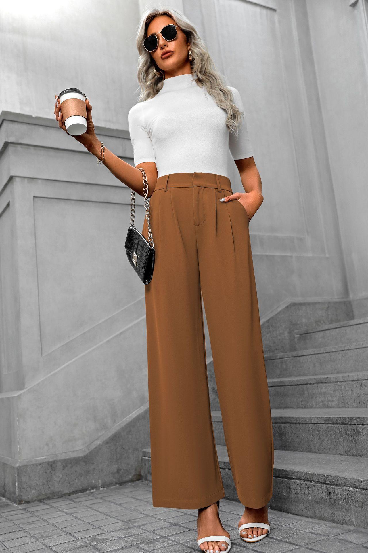 Cross-border europeu e americano amazonas novas mulheres casuais elegantes viajante cintura alta calças largas calças de terno retas soltas para mulheres