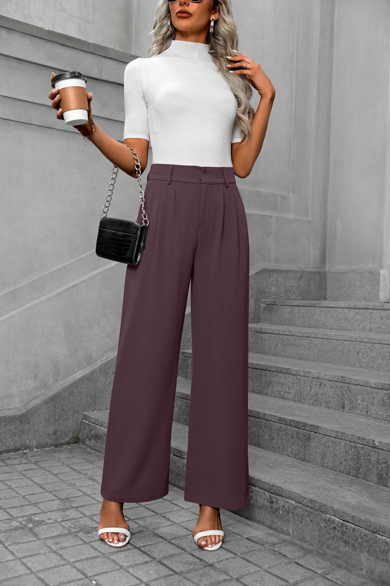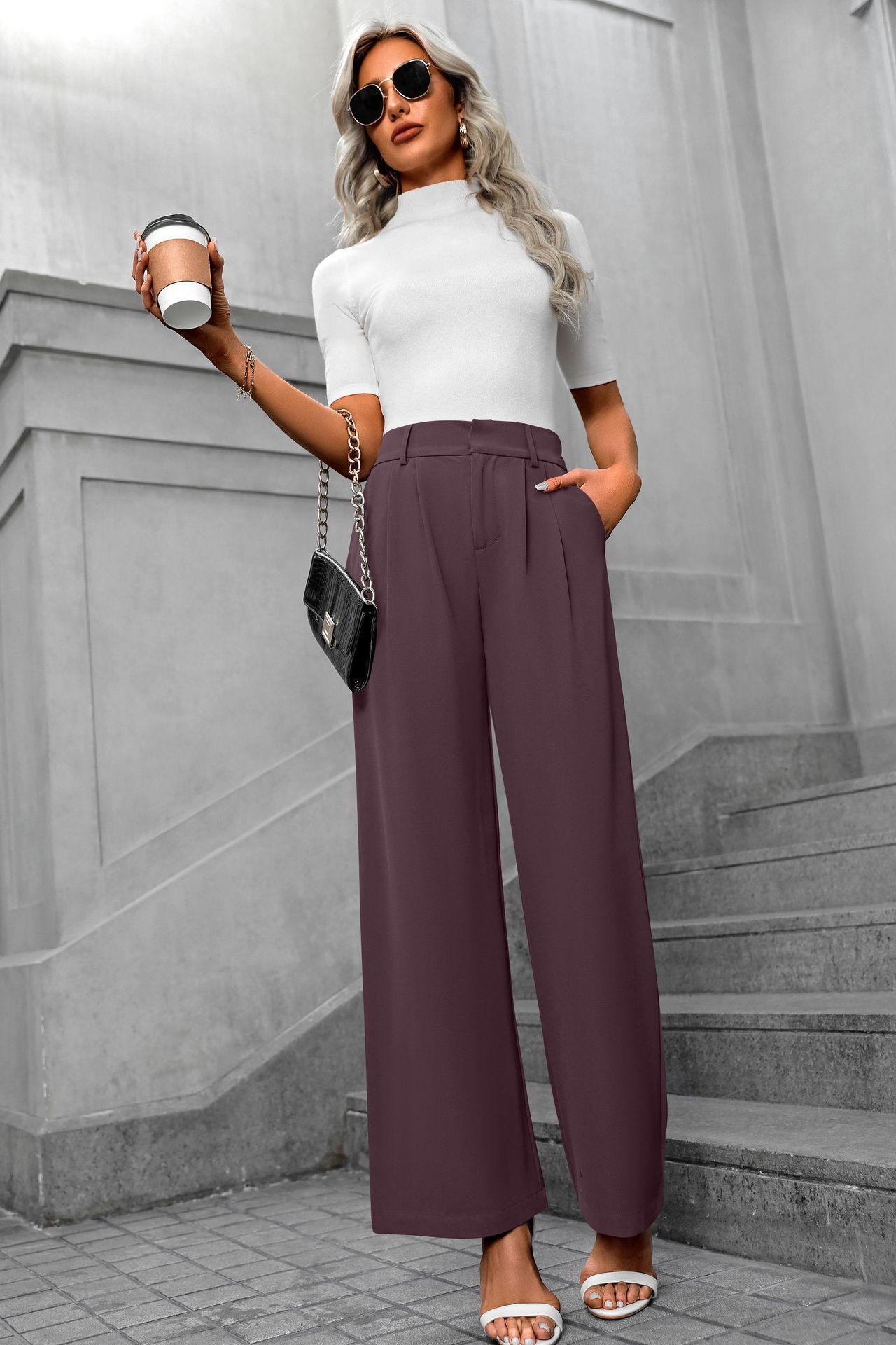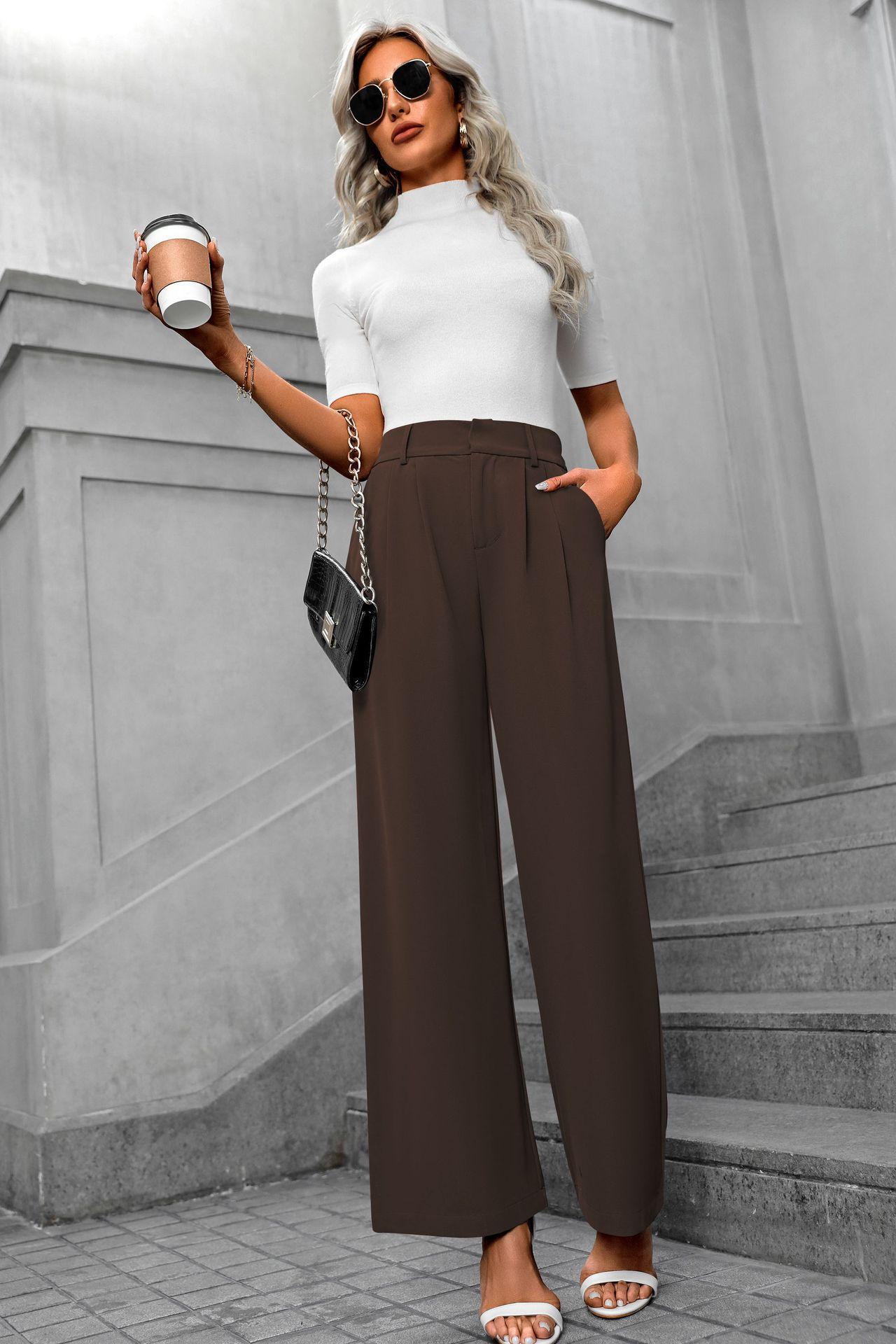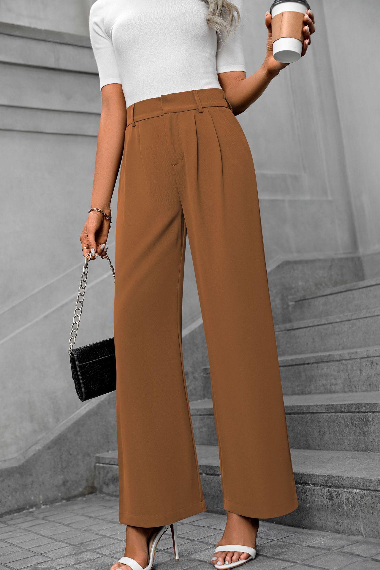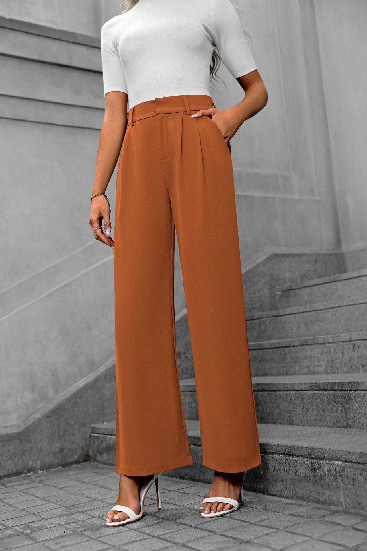 Cross-border europeu e americano amazonas novas mulheres casuais elegantes viajante cintura alta calças largas calças de terno retas soltas para mulheres