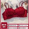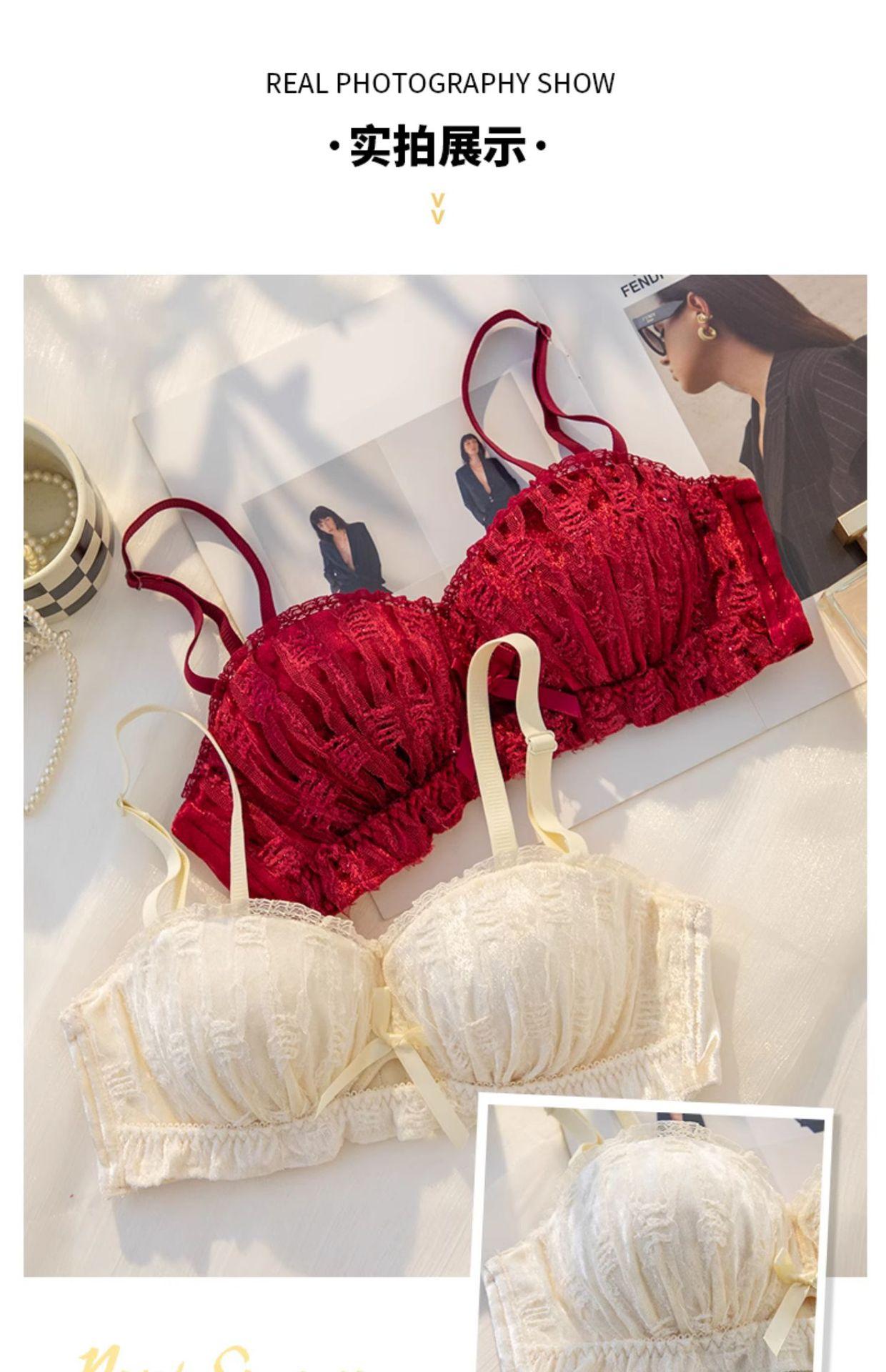 Novo vestido vermelho veludo cueca mulheres peito pequeno empurrar para cima grande peito plano ajustável menina sexy terno sutiã