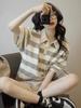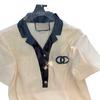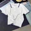 Camiseta de Manga Curta com Gola Polo de Algodão Puro para Mulheres 2024 Verão Novo Design Nicho Estilo Preppy Casual Camisa Polo Tendência