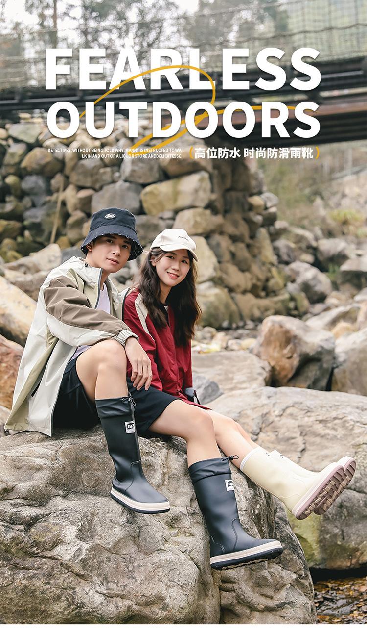2025 Casal Masculino e Feminino Botas de Chuva Altas Estilo Camping Botas de Chuva Ao Ar Livre Vadeando Cinto Pesca Impermeável Antiderrapante Sapatos de Água