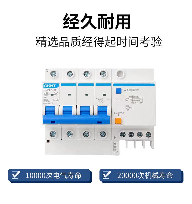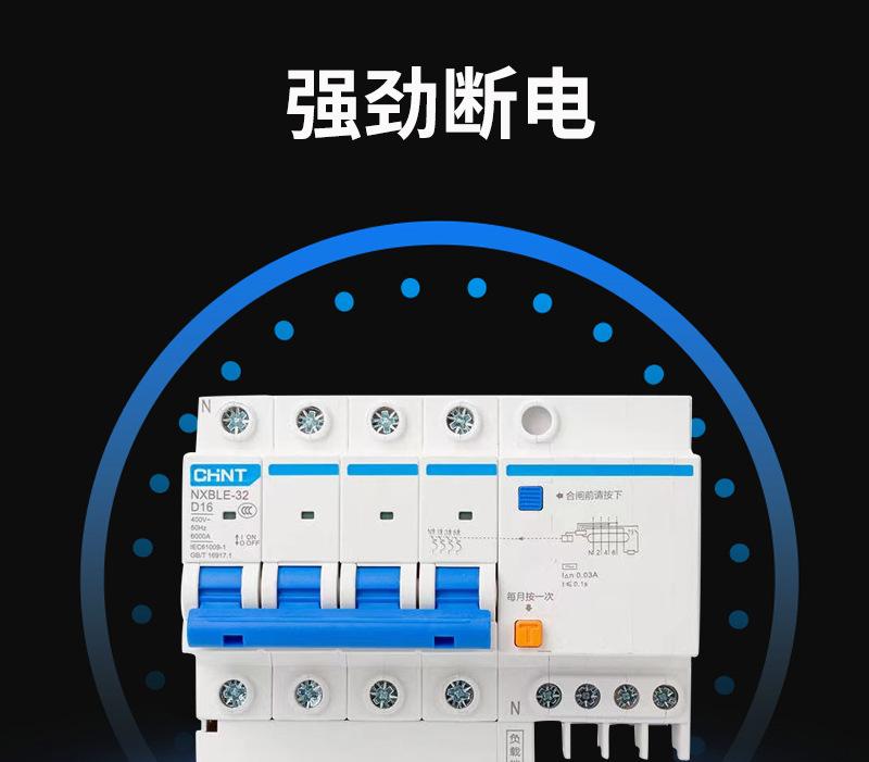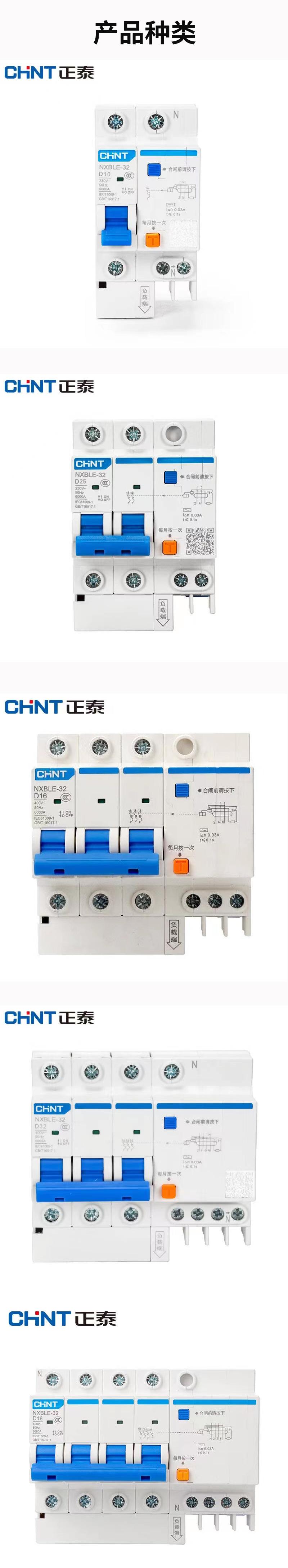 Interruptor de ar doméstico Chint com proteção contra vazamento, interruptor de ar 2P, proteção contra vazamento, sobrecarga, disjuntor elétrico tipo D NXBLE