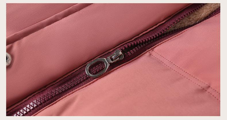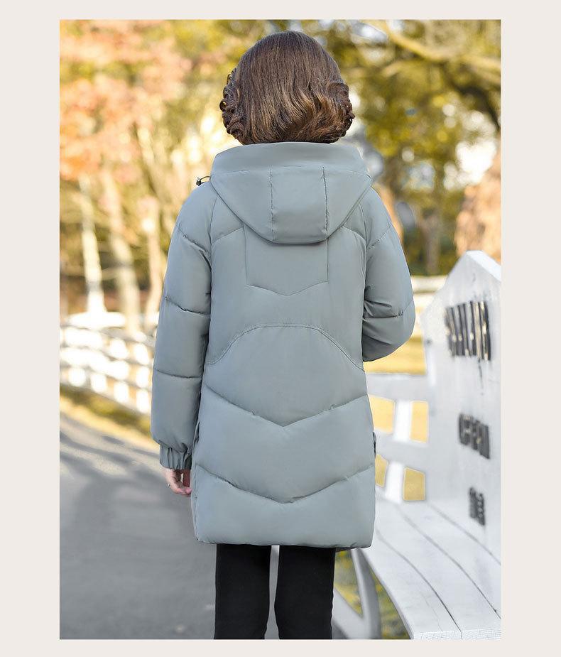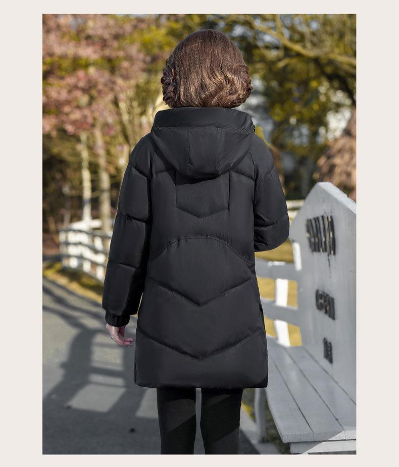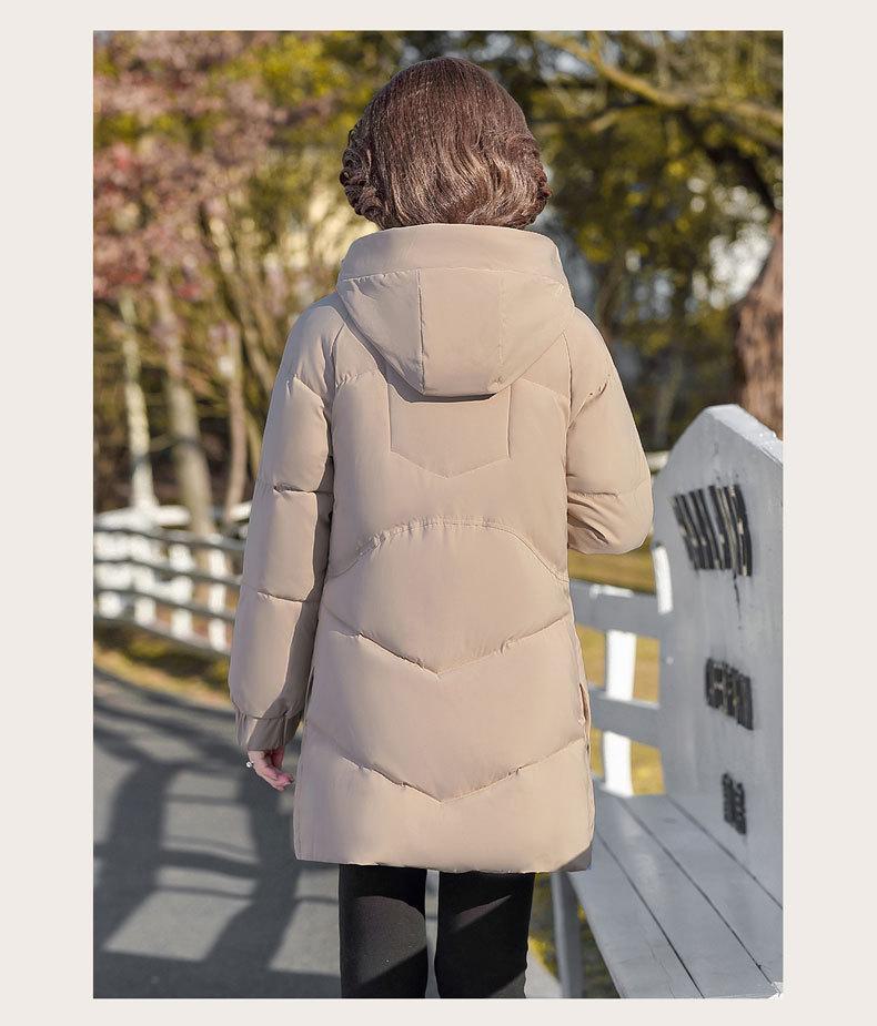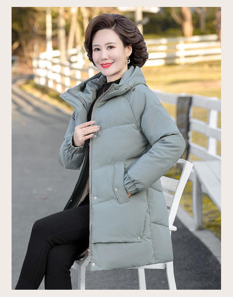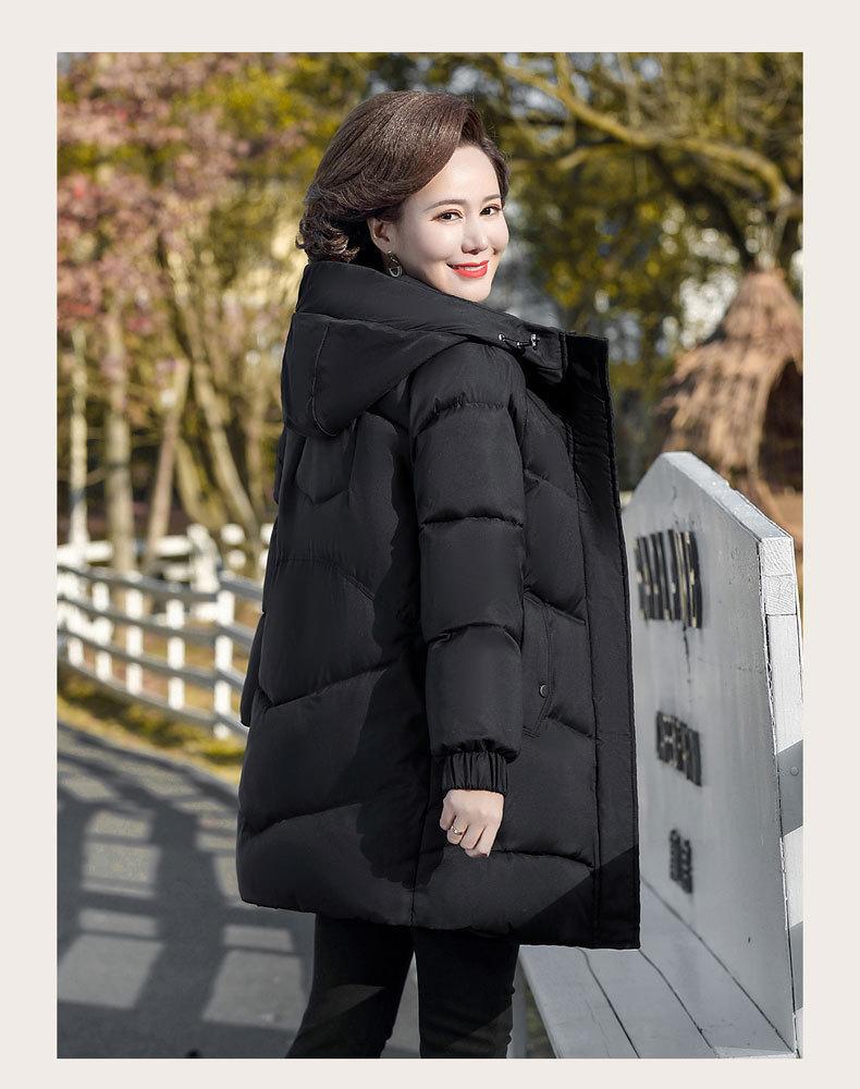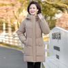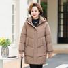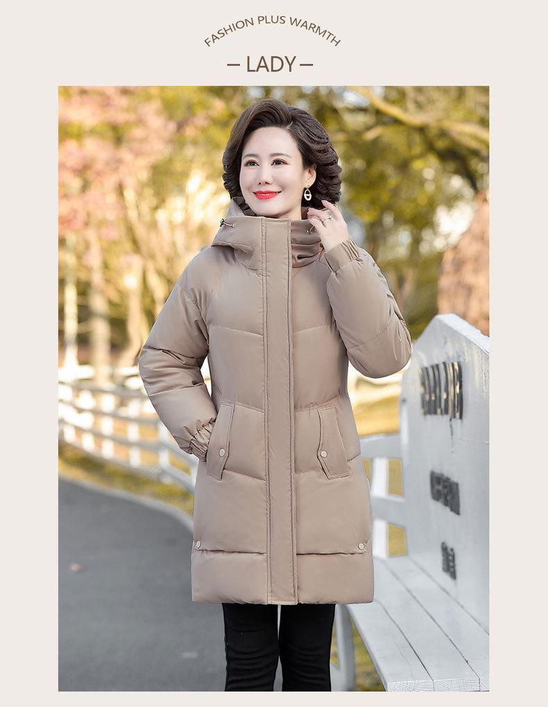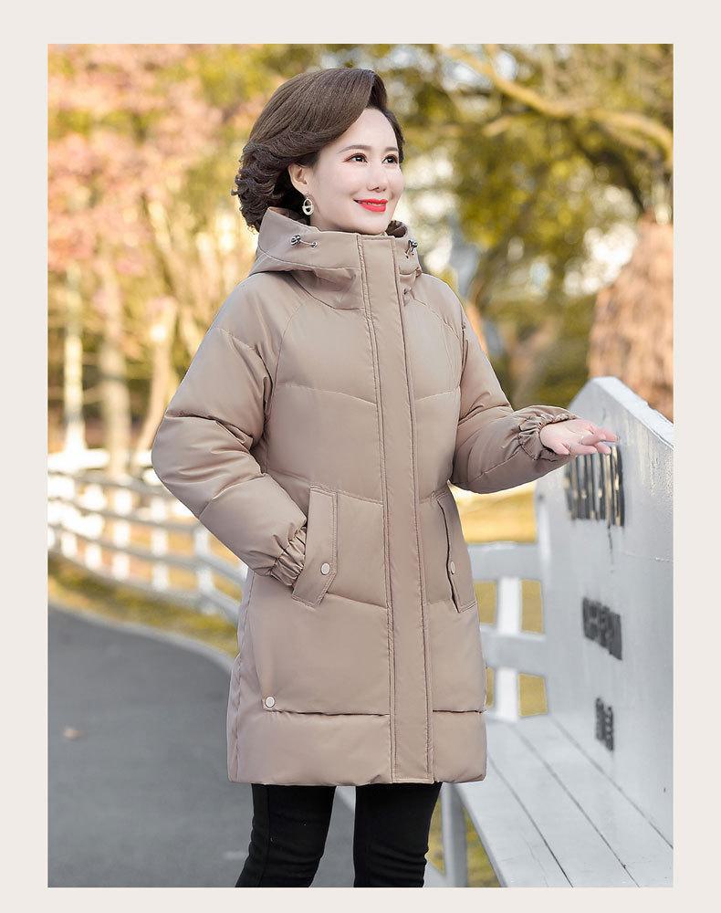 Casaco de inverno acolchoado de algodão para mãe, casaco com capuz espesso e forrado de lã de comprimento médio, casaco de inverno acolchoado de algodão para mulheres de meia-idade e idosas