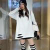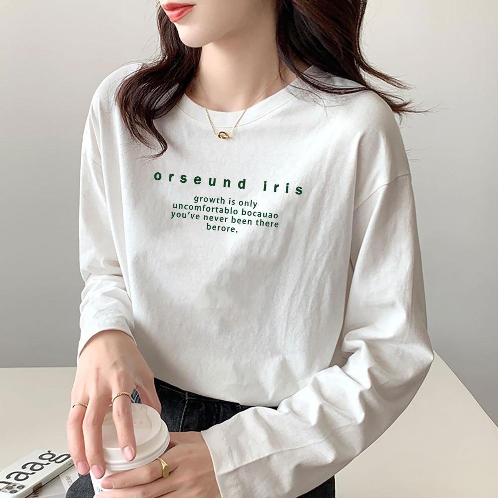 Camiseta branca feminina, camisa básica de algodão estilo coreano, nova primavera e outono, 2024, gola redonda, manga comprida, top all-match