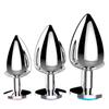 Plugs anais de alta qualidade, excelente acabamento, diamantes coloridos brilhantes, metal brilhante, disponíveis em três tamanhos: grande, médio e pequeno Plug anal resistente; comprimento 8 cm; diâmetro grande 3,4 cm; peso: 96 g