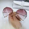 Óculos de sol sem armação, óculos de sol da moda europeia e americana, óculos de sol grandes, protetor solar vermelho e diamante, atacado