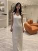 Vestido francês retrô listrado sem mangas de malha, colete, verão, elegante, suave, solto, reto, estilo preguiçoso, vestido longo