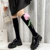 Meias de Design Novo Primavera e Verão Nicho Elegante Lolita Jk Meias de Bezerro Meias Rosa Flor Estéreo Meias de Algodão de Meia Panturrilha