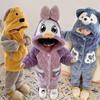 Pijamas das crianças meninas outono e inverno flanela bonito desenhos animados engrossado com veludo lapela cardigan