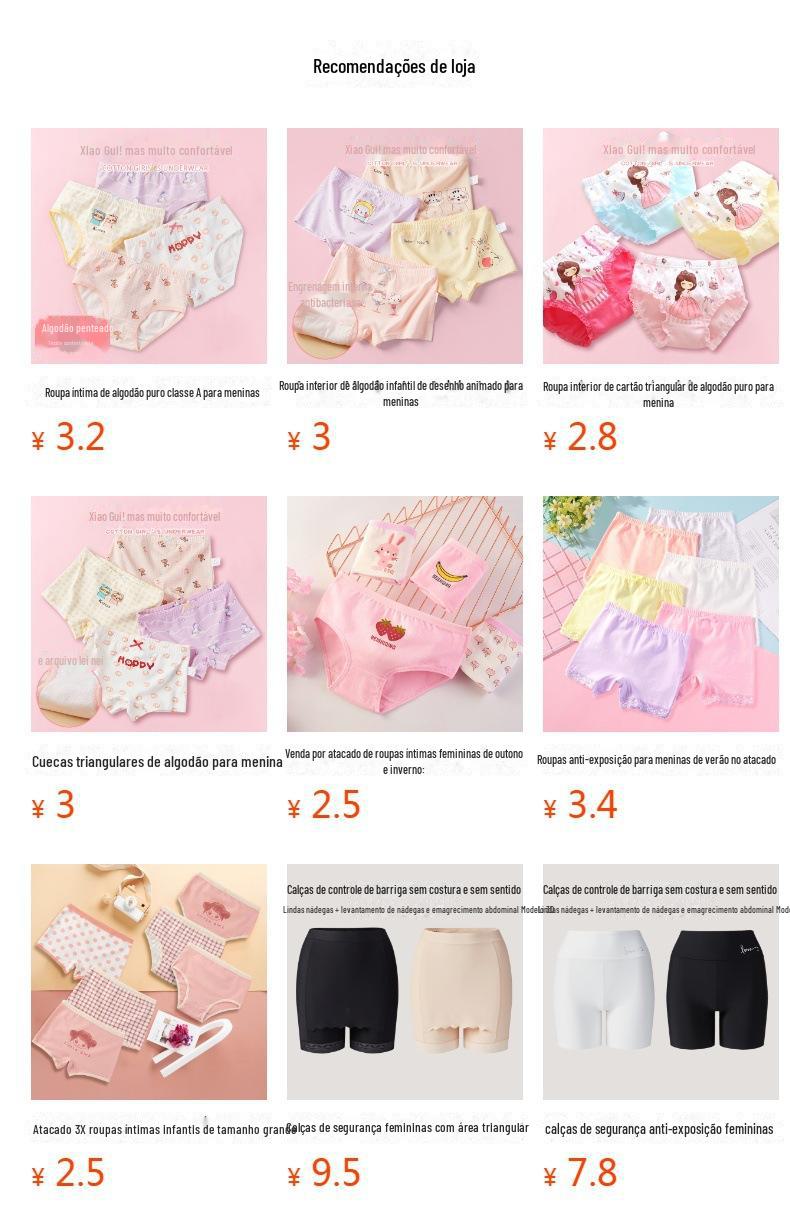 Roupa Íntima Infantil, Calcinhas de Menina, Boxers de Menina, Roupa Íntima de Bebê, Algodão Puro Atacado para Crianças Médias e Grandes