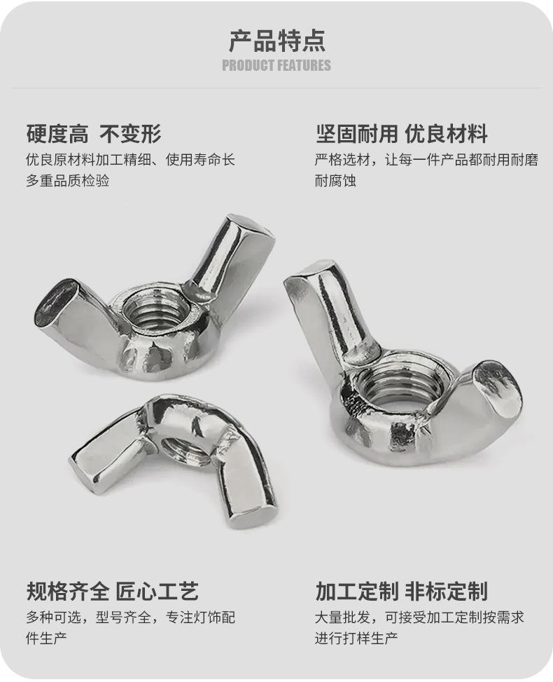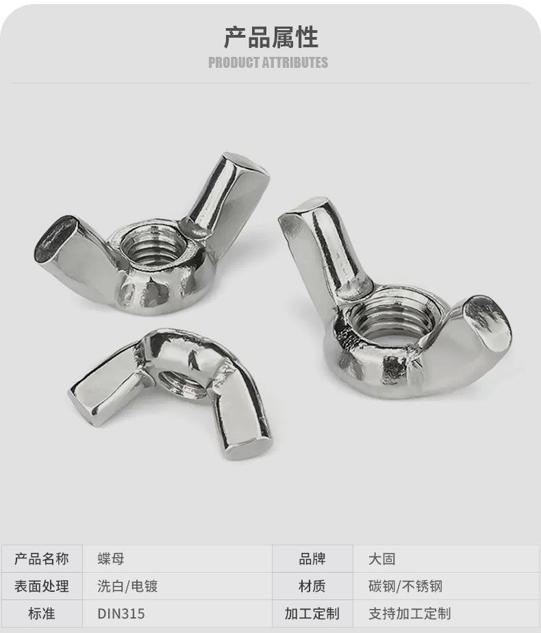Porca borboleta de aço inoxidável 304 201 em aço inoxidável galvanizado niquelado DIN315 porca de parafuso manual