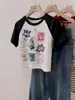 Camiseta de manga curta com estampa de flocagem de algodão puro bordado da indústria pesada, camiseta feminina de verão, gordinha, retrô, da moda, de marca, de nicho, roupas de cima