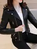 Jaqueta de Couro Pequena Jaqueta Curta de Couro PU Feminina 2025 Primavera & Outono Nova Tamanho Grande Haining Jaqueta de Couro para Motociclista Estilo Coreano Slim e Moderna