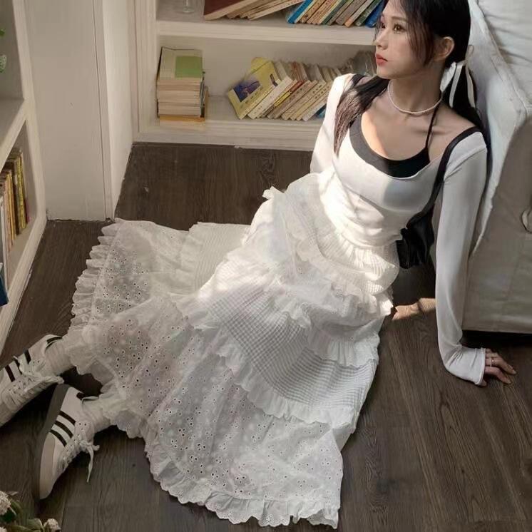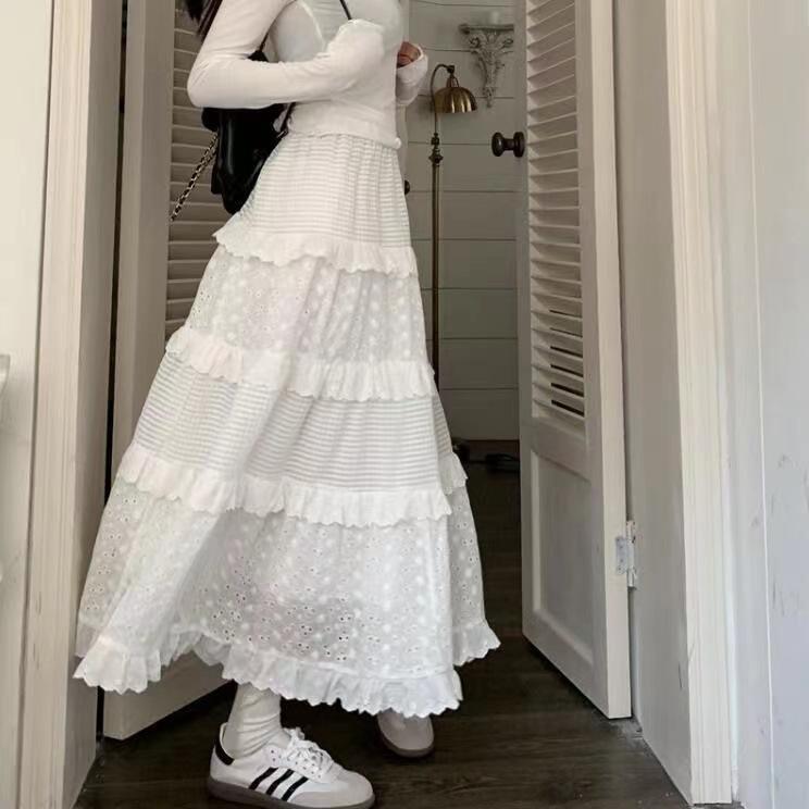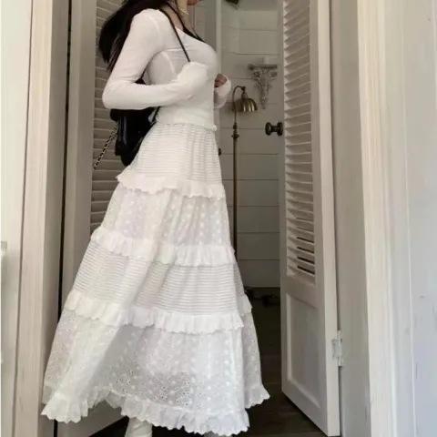 Saia Pequena Suave Estilo Francês Primavera Cintura Alta Cintura Alta A- Linha Saia Bolo Saia Saia Longa Crochê Saia Branca