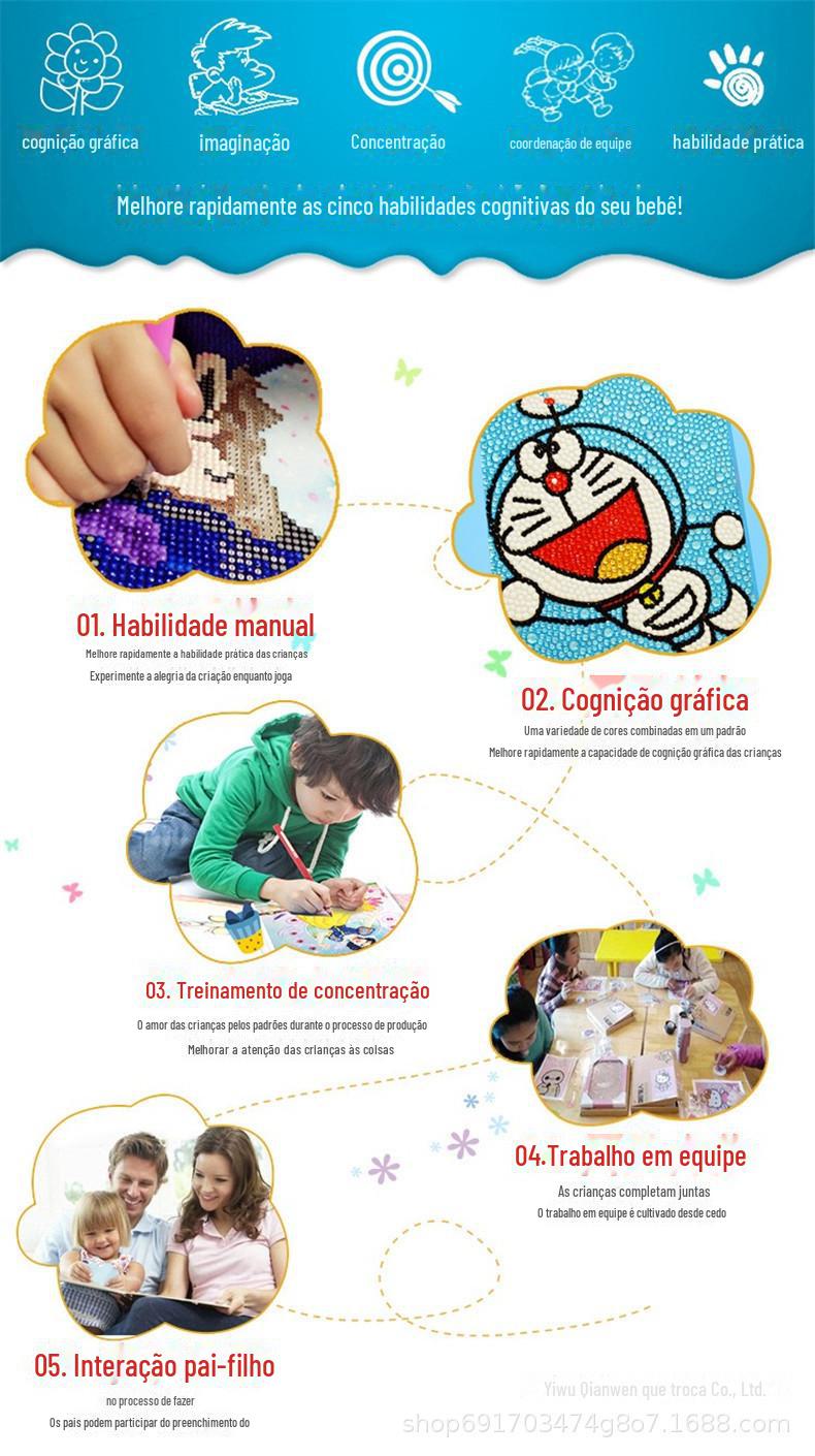 Novo Pintura Diamante Criativa Transfronteiriça Adesivos Aleatórios Adesivos Diamante Anime Brinquedos DIY Manuais para Crianças Atacado