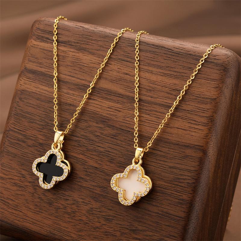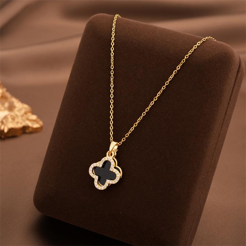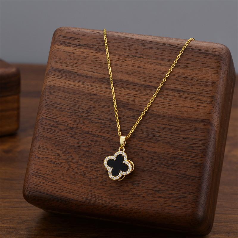 Cross-border de alta qualidade de camada dupla Clover pingente colar de titânio de titânio para mulheres moderno nicho leve luxo não-desbotamento feminino clavícula corrente