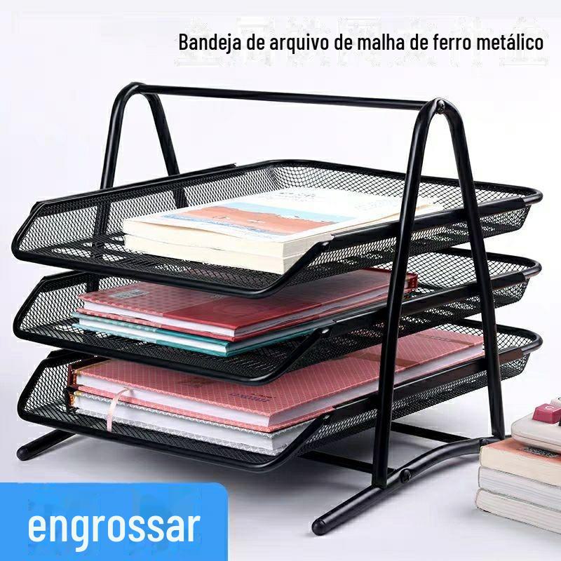 Cesta de arquivo de metal multicamadas, rack de arquivo de três camadas, rack de dados de rede de ferro de quatro engrenagens, rack de armazenamento, rack de arquivo multifuncional