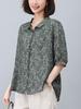 Camisa Ramie Pura Feminina Verão Manga Curta 2024 Nova Moda Solta Elegante Pequena Mãe Cardigan Top Floral