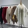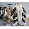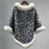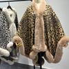 Faux mink pele gravata manga leopardo estampa xale Cabo cachecol estilo Chanel com casaco de bolso mulheres suéter solto