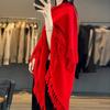 Xale de lã europeu e americano para outono e inverno, capa com borla, cobertor externo feminino, cachecol, fivela solta, casaco de malha, suéter feminino