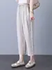 Calças de algodão e cânhamo Feminino Verão Solto Pequeno 2024 Novo Emagrecimento Fino Meia-idade Mãe Calças de cânhamo Cropped Calças