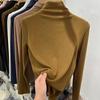 Primavera, Outono e Inverno 2025 Camiseta Básica de Gola Alta Interna Branca de Manga Longa Top Feminino Estilo Casual Japonês e Coreano