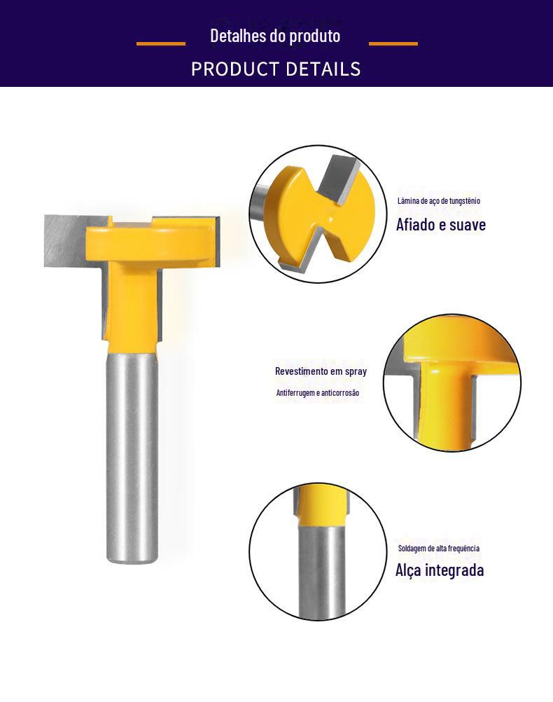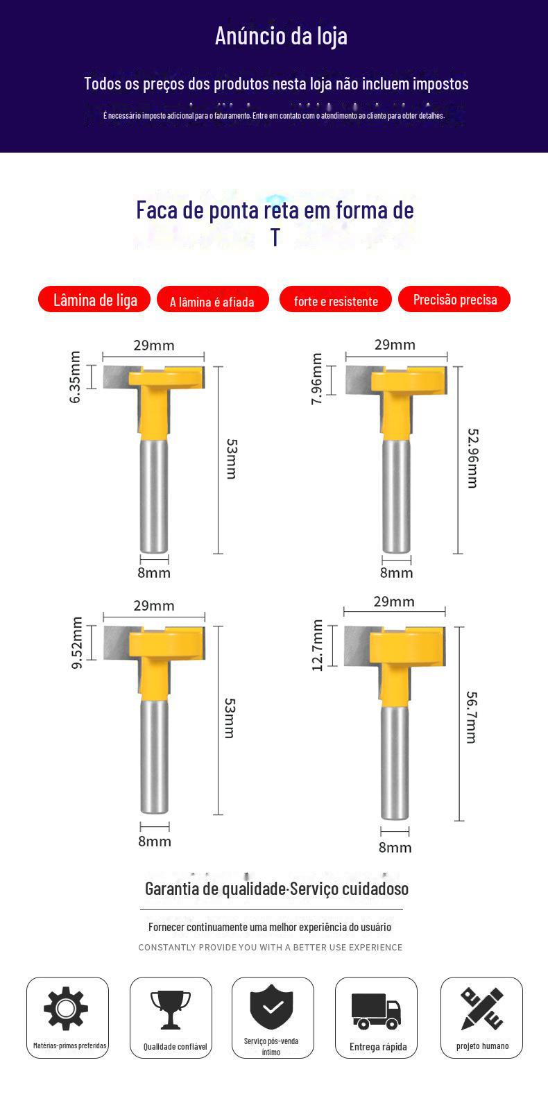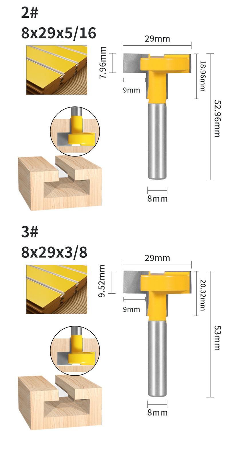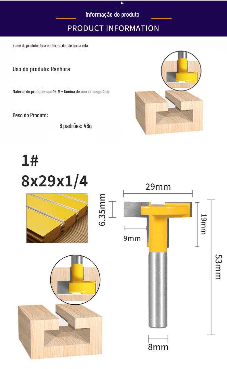 Fresa reta em formato de T, haste 8, 29 mm de diâmetro, fresa para entalhe, fresa de puxar, fresa reta em formato de T, fresa para trabalhar madeira