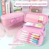 Bolsa de lápis de lona simples para estudantes do ensino fundamental e médio, bolsa de papelaria portátil, grande capacidade, multicamadas, com trava de senha, para comércio exterior