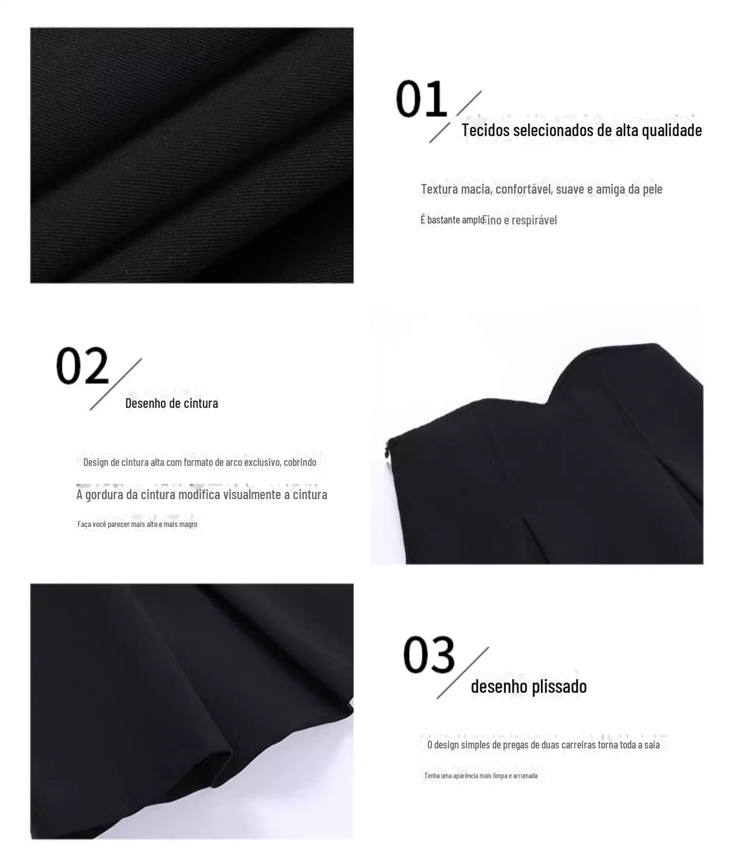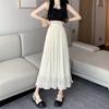 Verão Novo Slimming Plissado A-line Saia Curta Cintura Alta Design de Levantamento de Quadril Saia Longa Cobrindo a Barriga