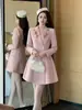 2025 tiro real outono e inverno novo temperamento de alta qualidade trespassado terno plissado moda casaco vestido