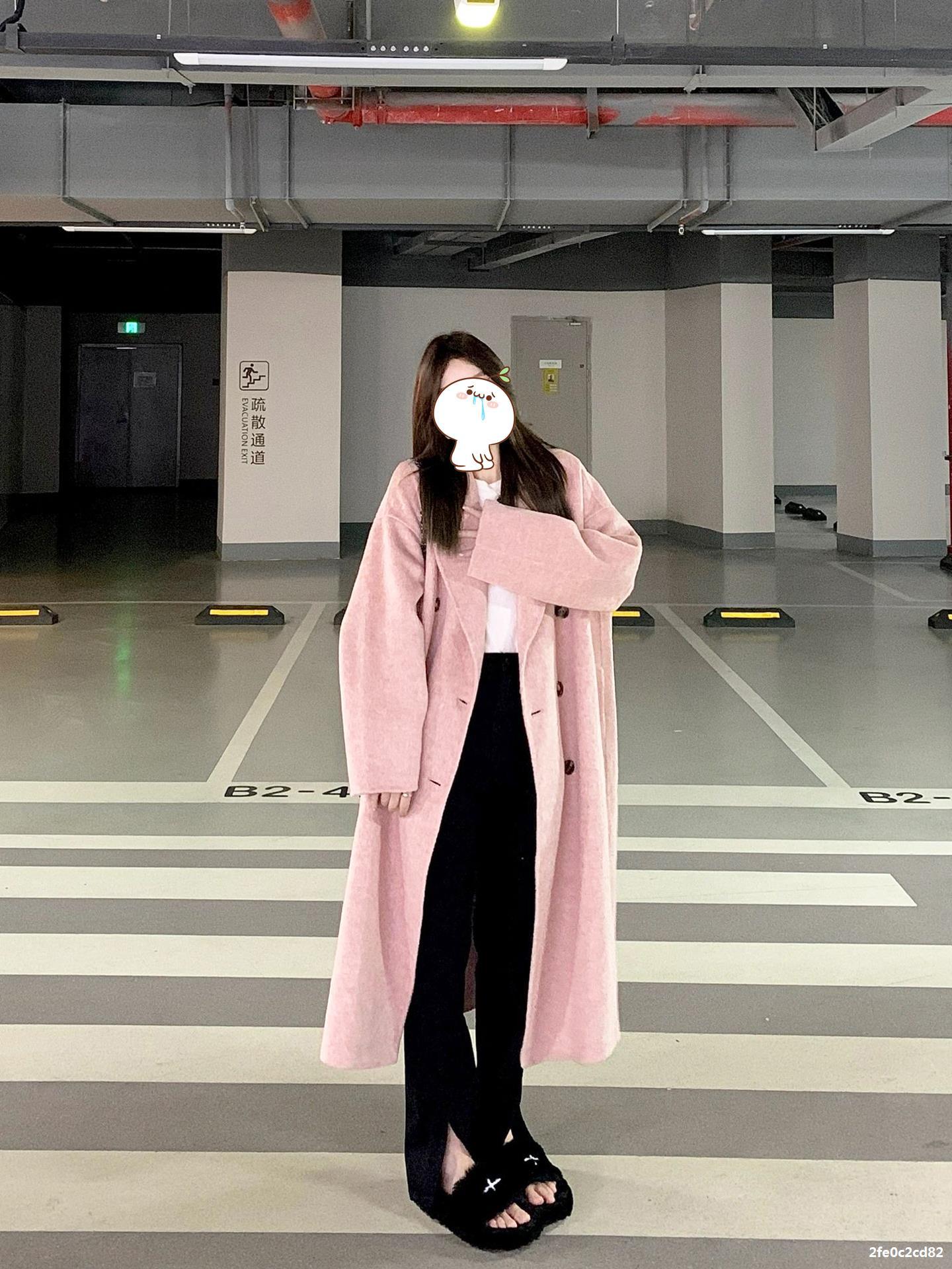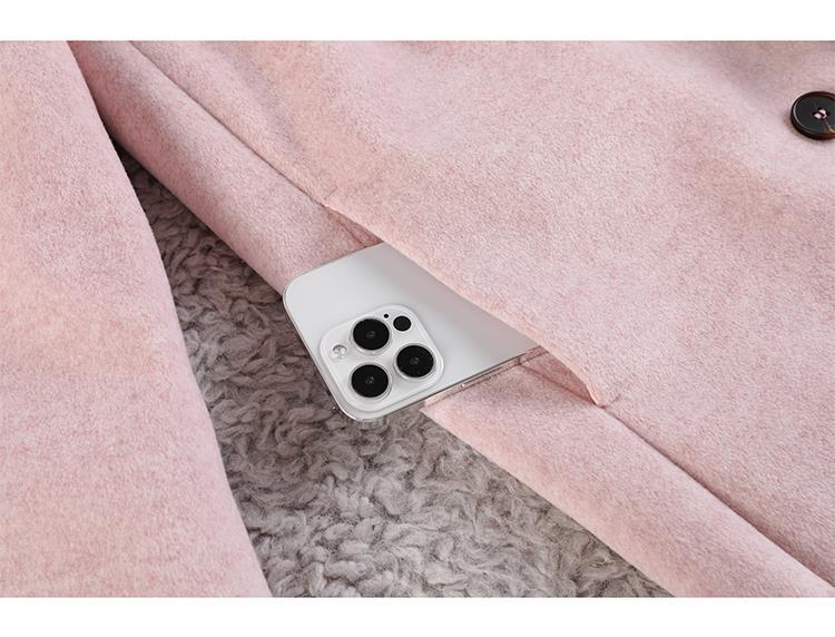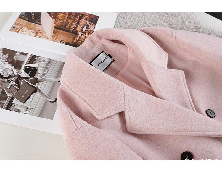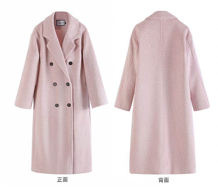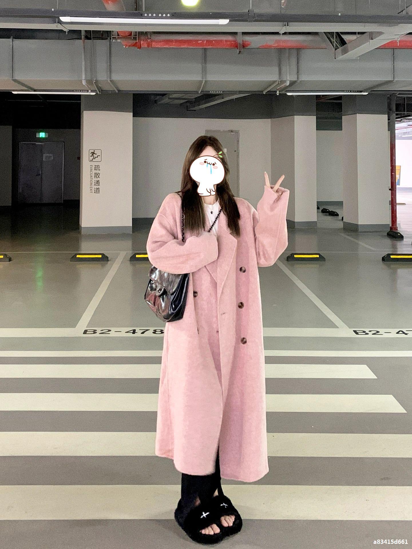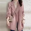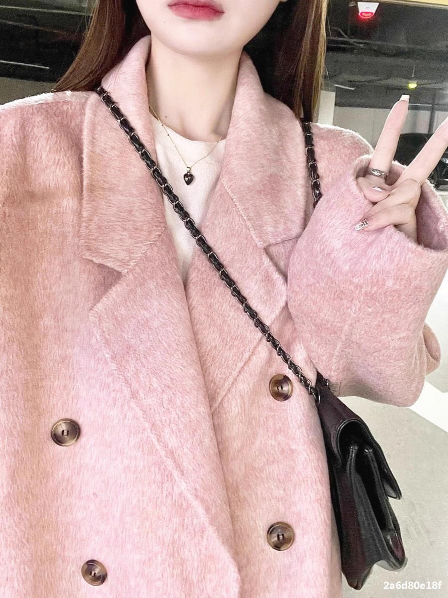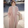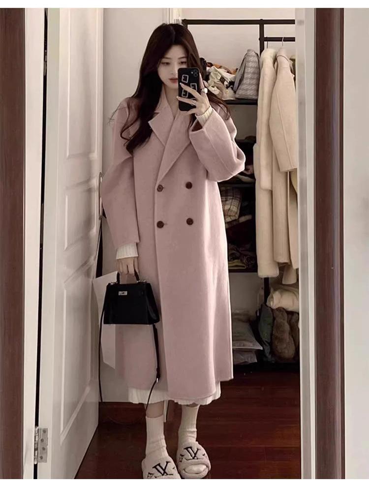 Casaco de Lã Caxemira Rosa para Mulheres, Estilo Longo, Novo Estilo Outono e Inverno 2024, Casaco de Lã Elegante Petite Estilo Coreano