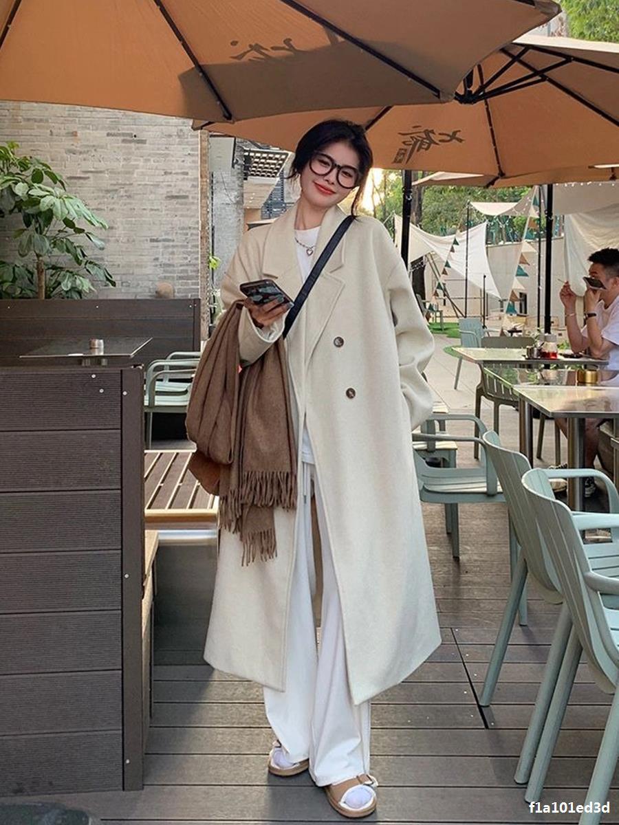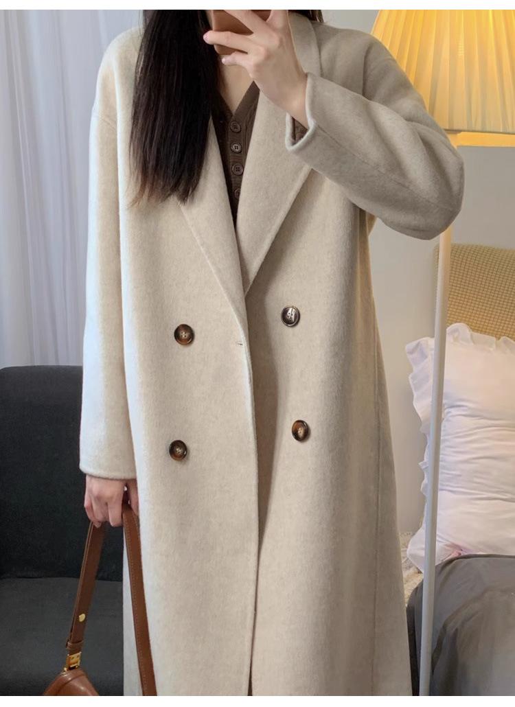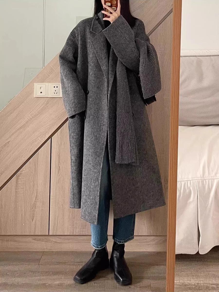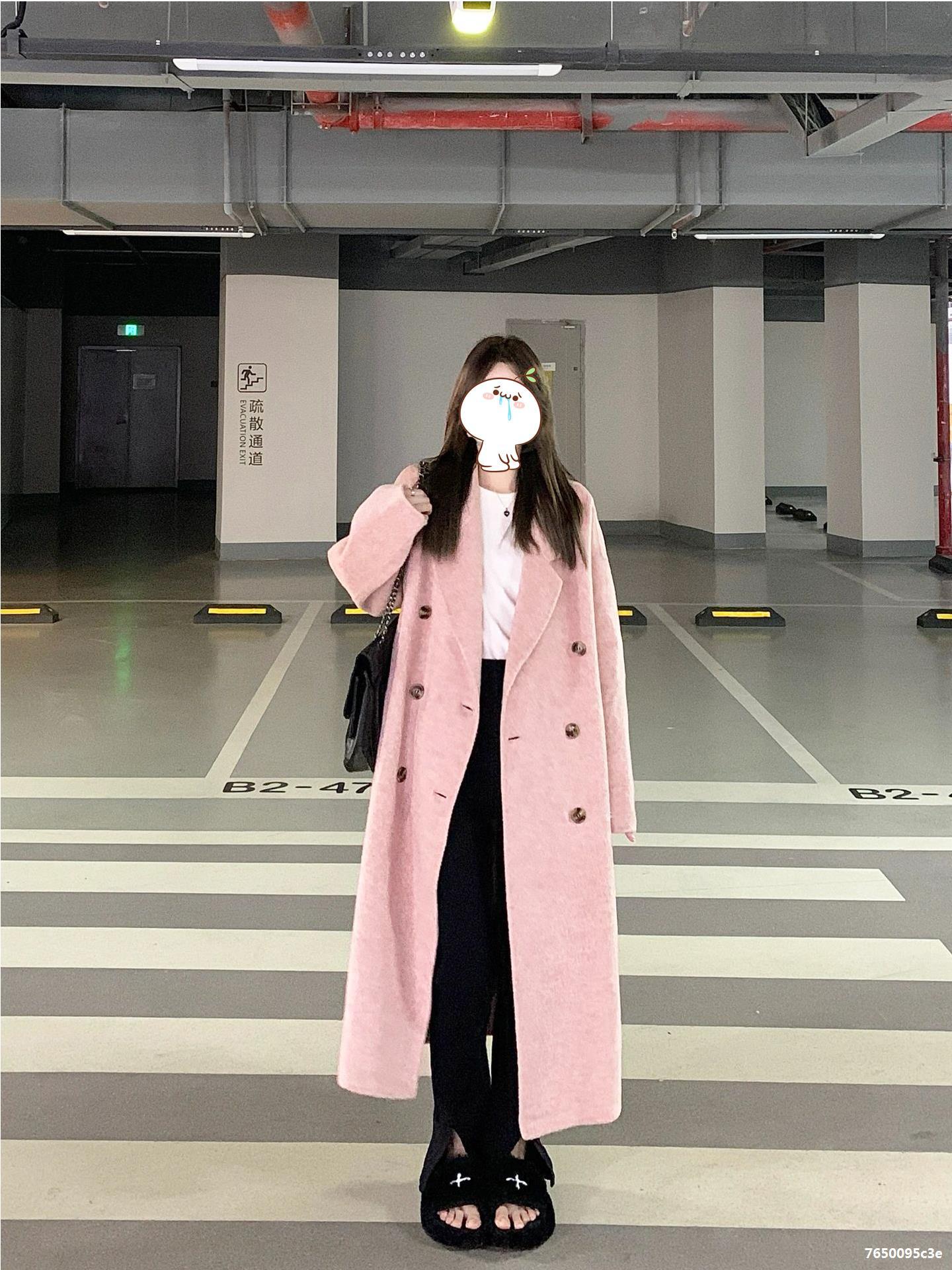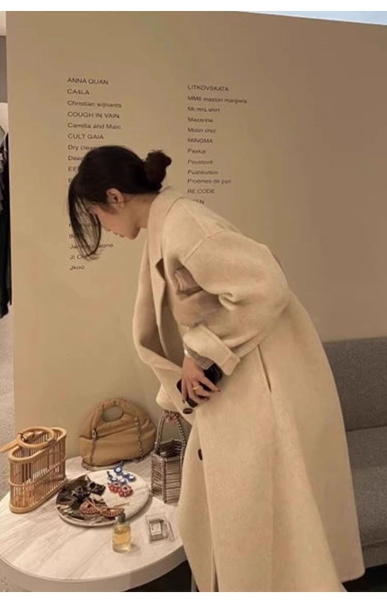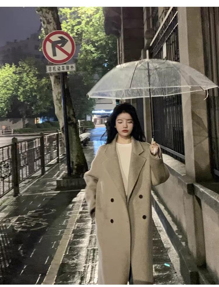 Casaco de Lã Caxemira Rosa para Mulheres, Estilo Longo, Novo Estilo Outono e Inverno 2024, Casaco de Lã Elegante Petite Estilo Coreano